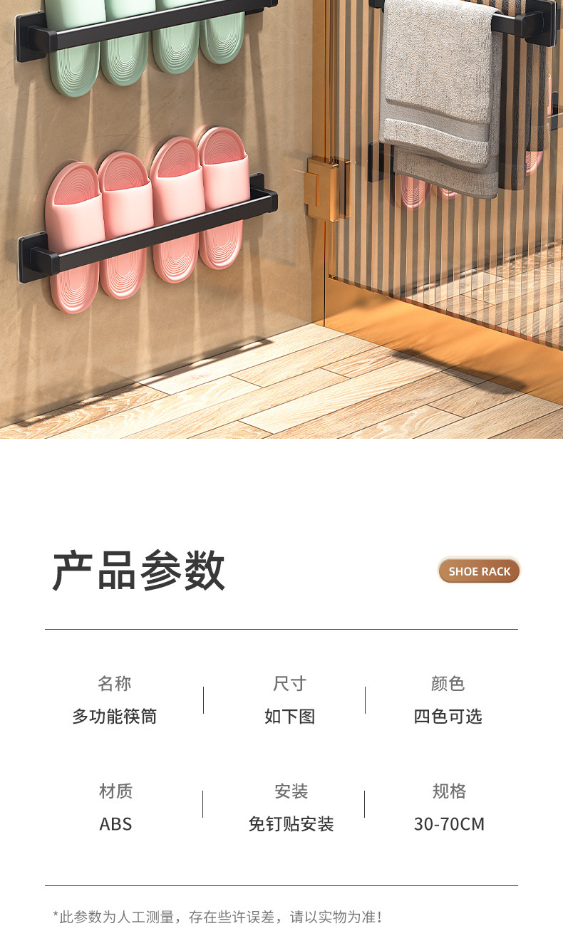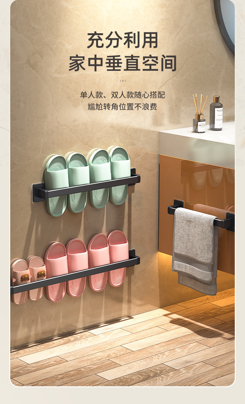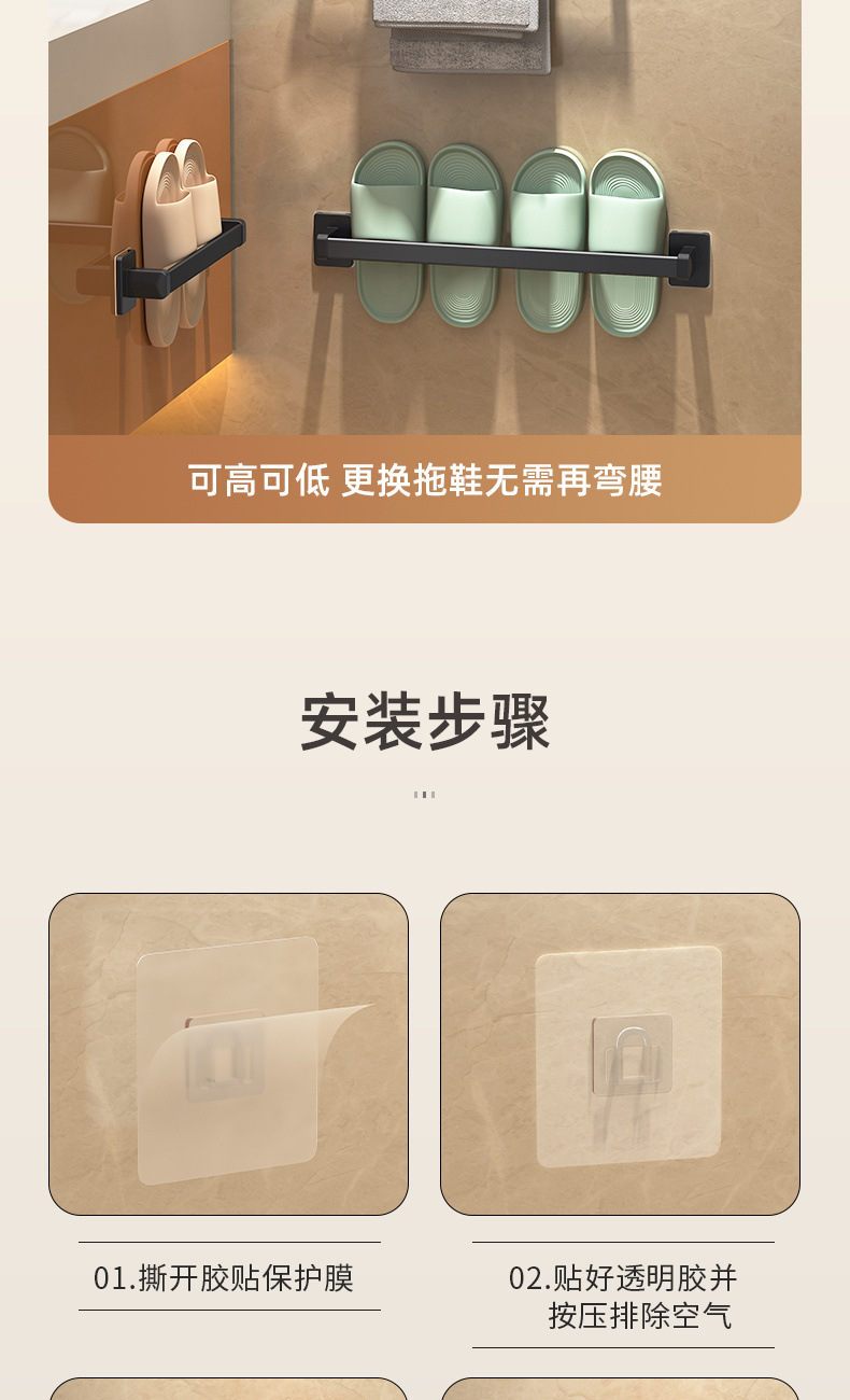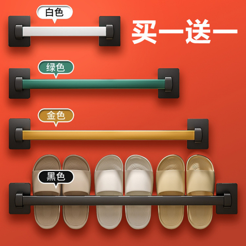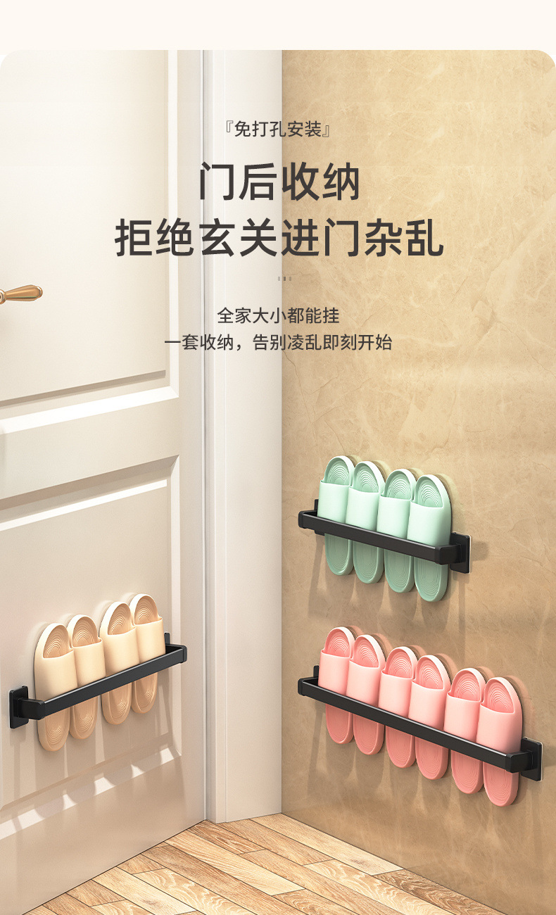 욕실 문 뒤에 벽걸이형 신발장, 수건걸이, 화장실 수납 신발장 등을 펀치 없이 설치할 수 있는 간편한 욕실 슬리퍼 걸이