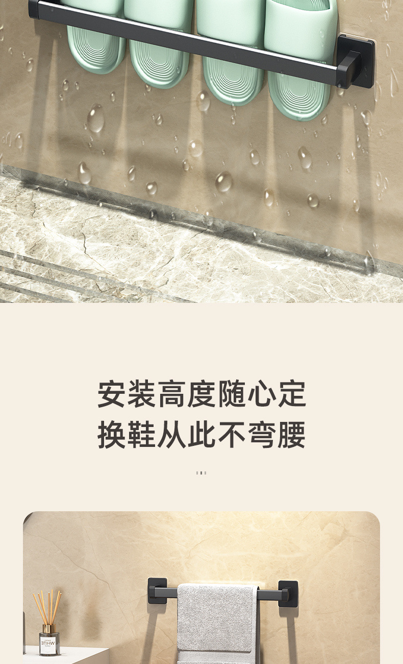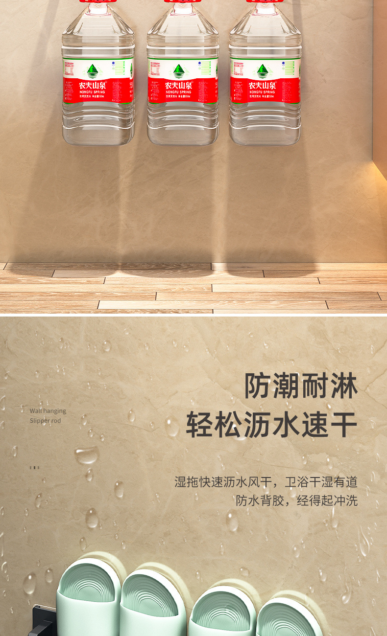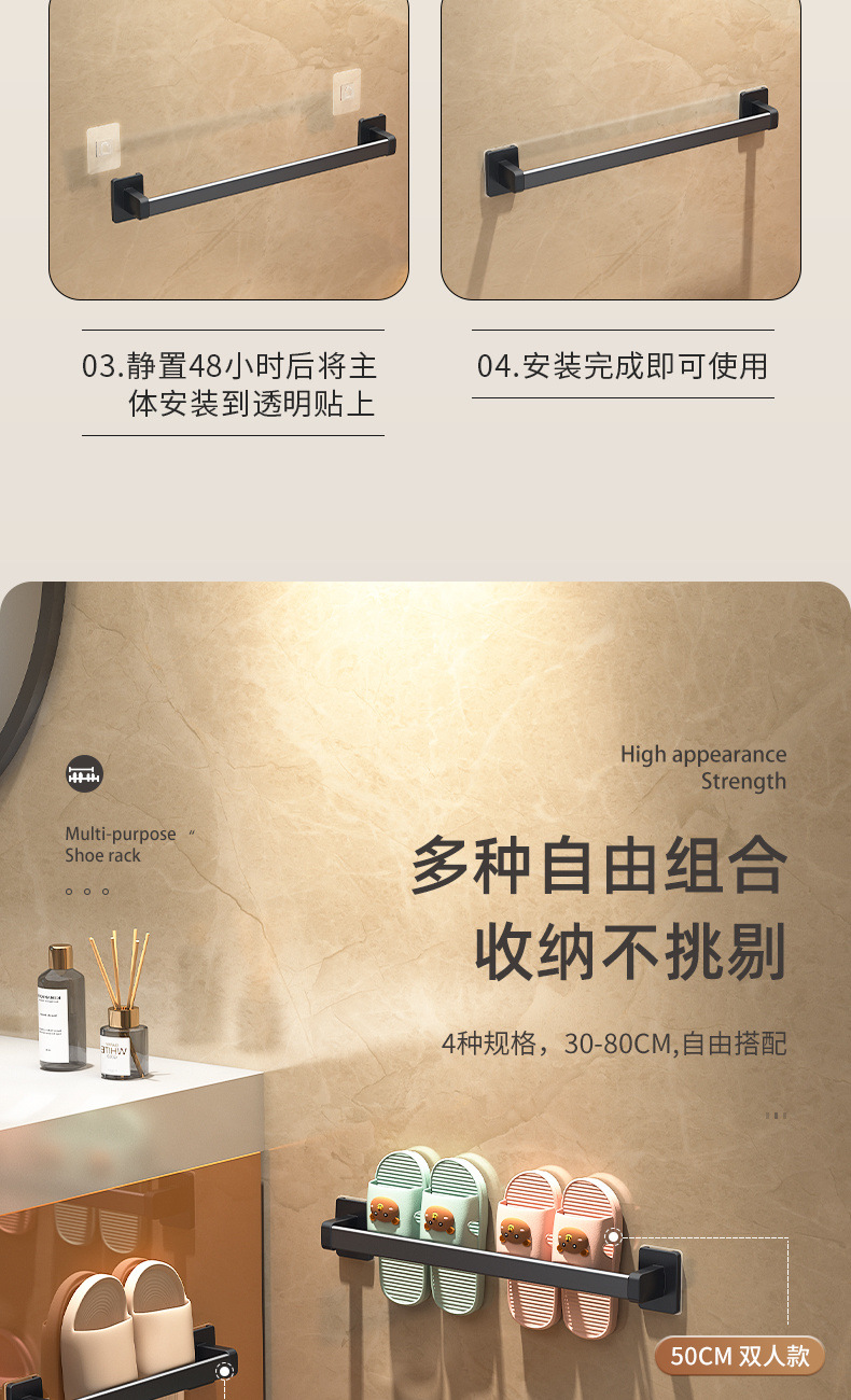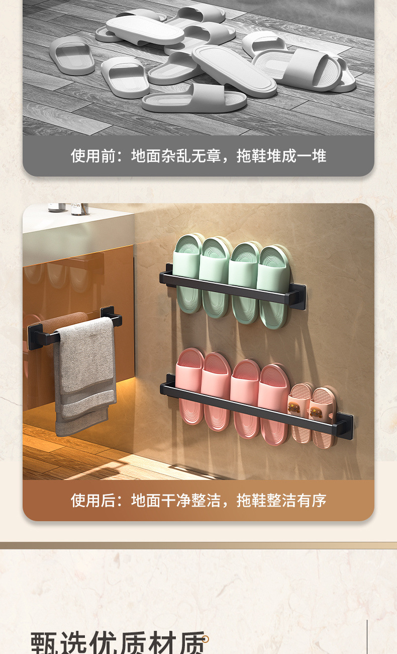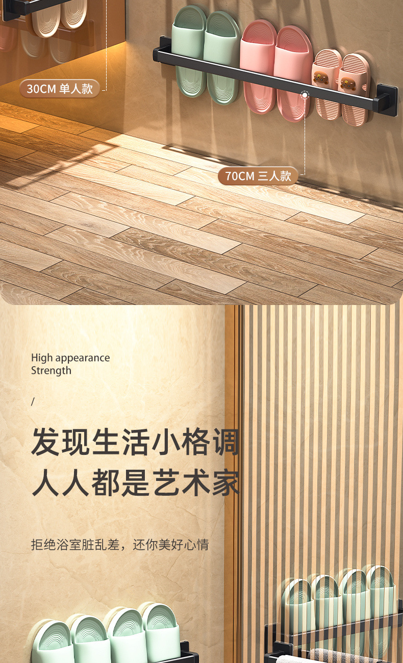 욕실 문 뒤에 벽걸이형 신발장, 수건걸이, 화장실 수납 신발장 등을 펀치 없이 설치할 수 있는 간편한 욕실 슬리퍼 걸이