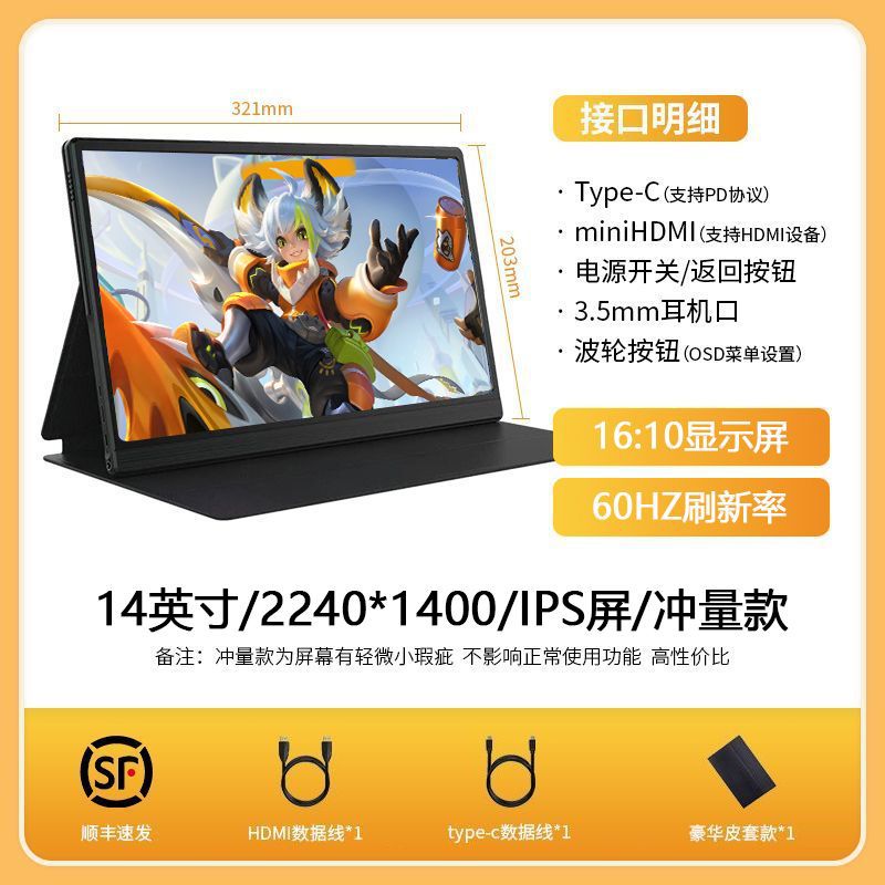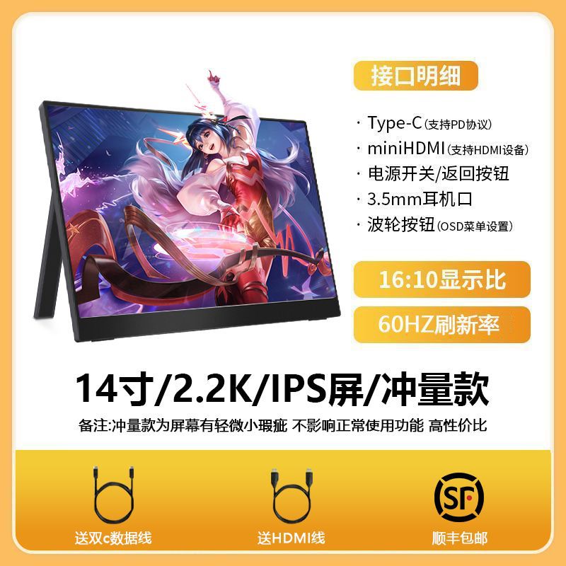 • 14inch [2.2k/1선 직접 연결] A--[UP-메인 추천-HD-여행용 휴대용 대형 화면]