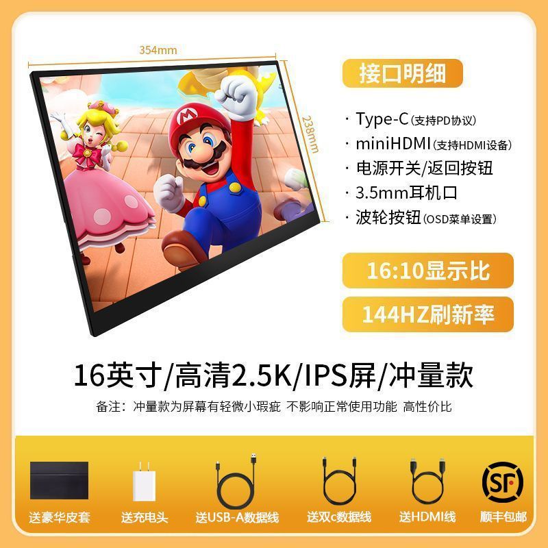 휴대용 디스플레이 HD 144hz 휴대 전화 스위치 외부 휴대용 화면 ps5Xbox 노트북 확장 보조 화면