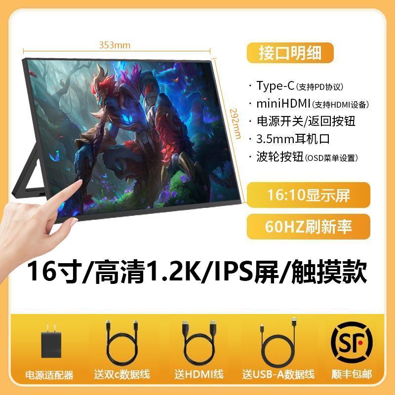 • 후면에 스탠드 A+가 있는 16인치 1.2k-60HZ 터치 모델-[UP-메인 추천-HD-여행용 휴대용 대형 화면]