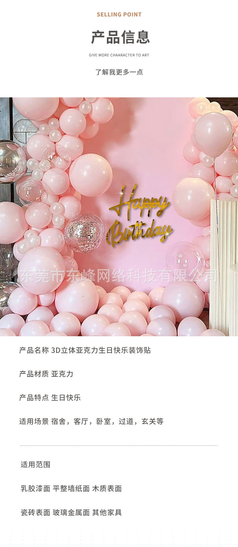 3D 입체 아크릴 생일 축하 장식 스티커 홈 벽 스티커 거실 입구 현관 스티커 제조 업체 도매스토어 가기