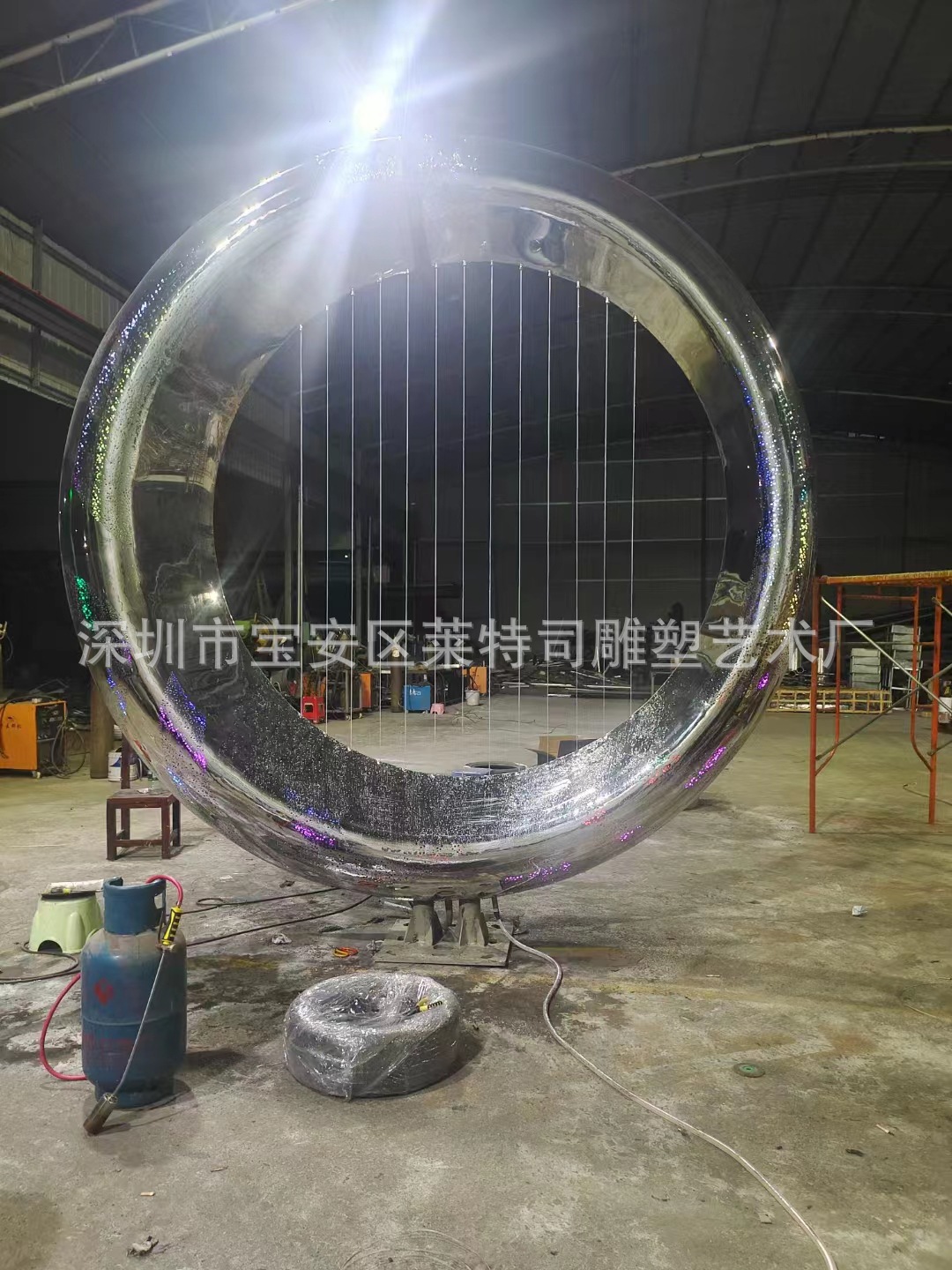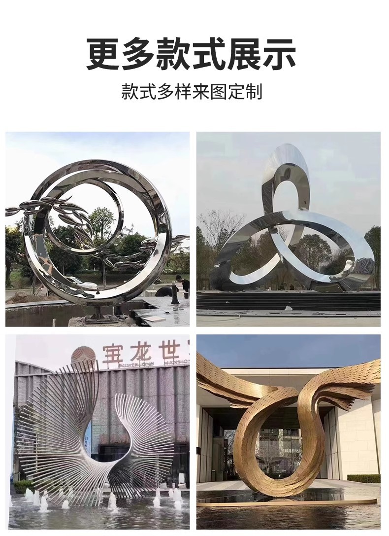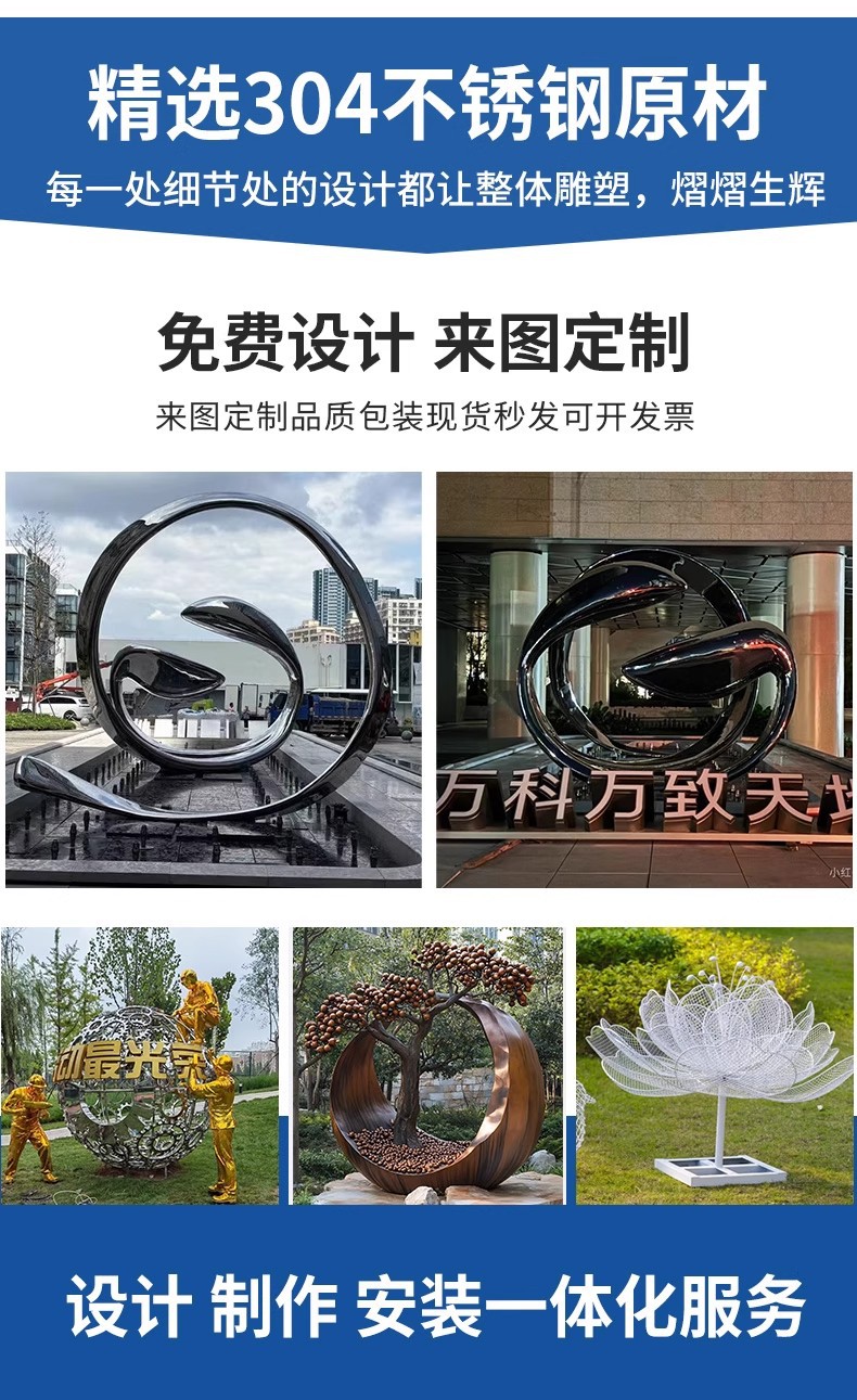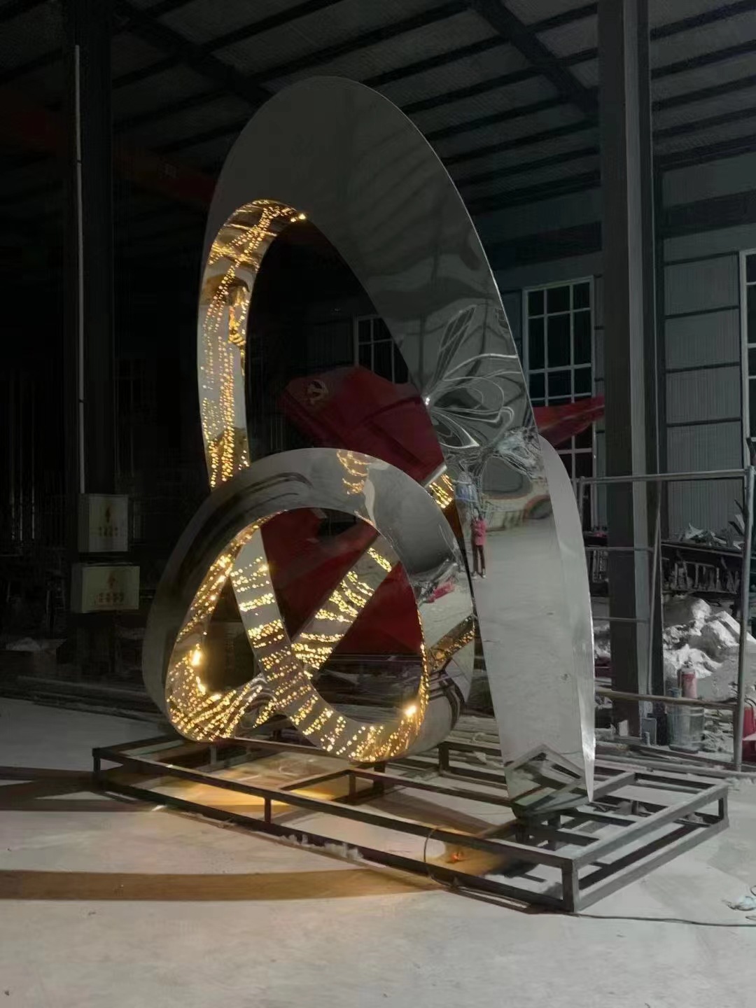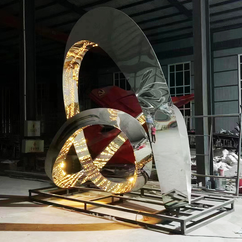 대형 스테인레스 스틸 워터 시닉 링 조각 맞춤형 중공 발광 거울 추상 미술 야외 조경 장식품스토어 가기