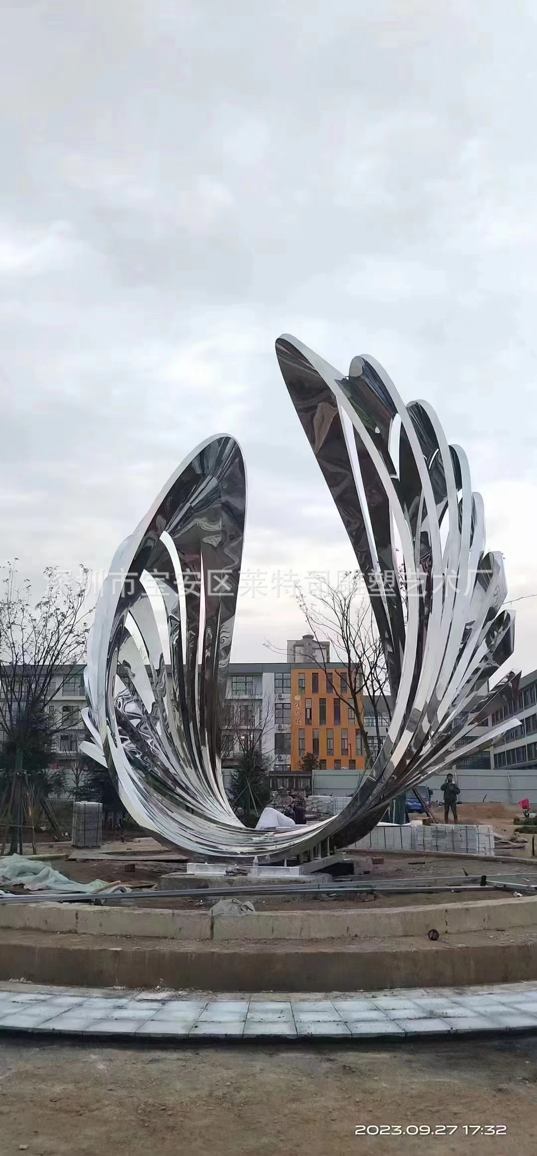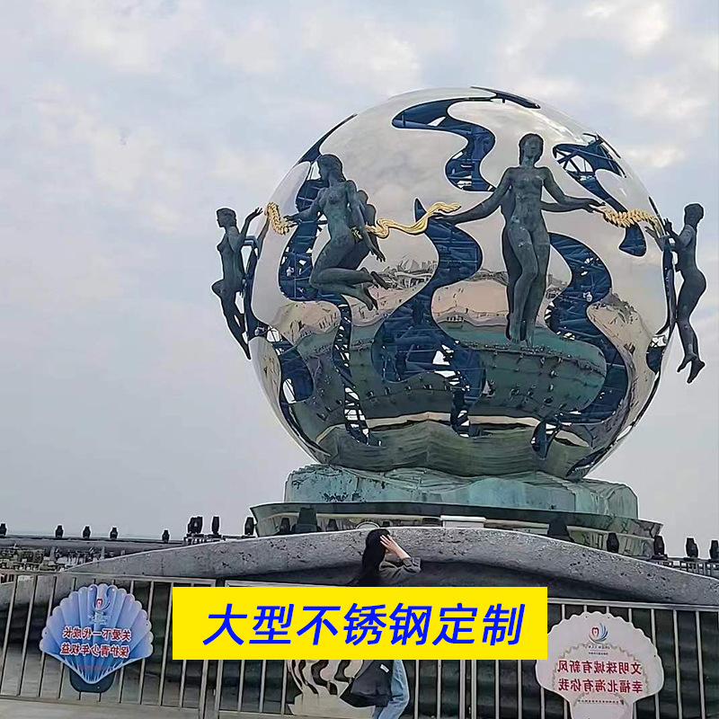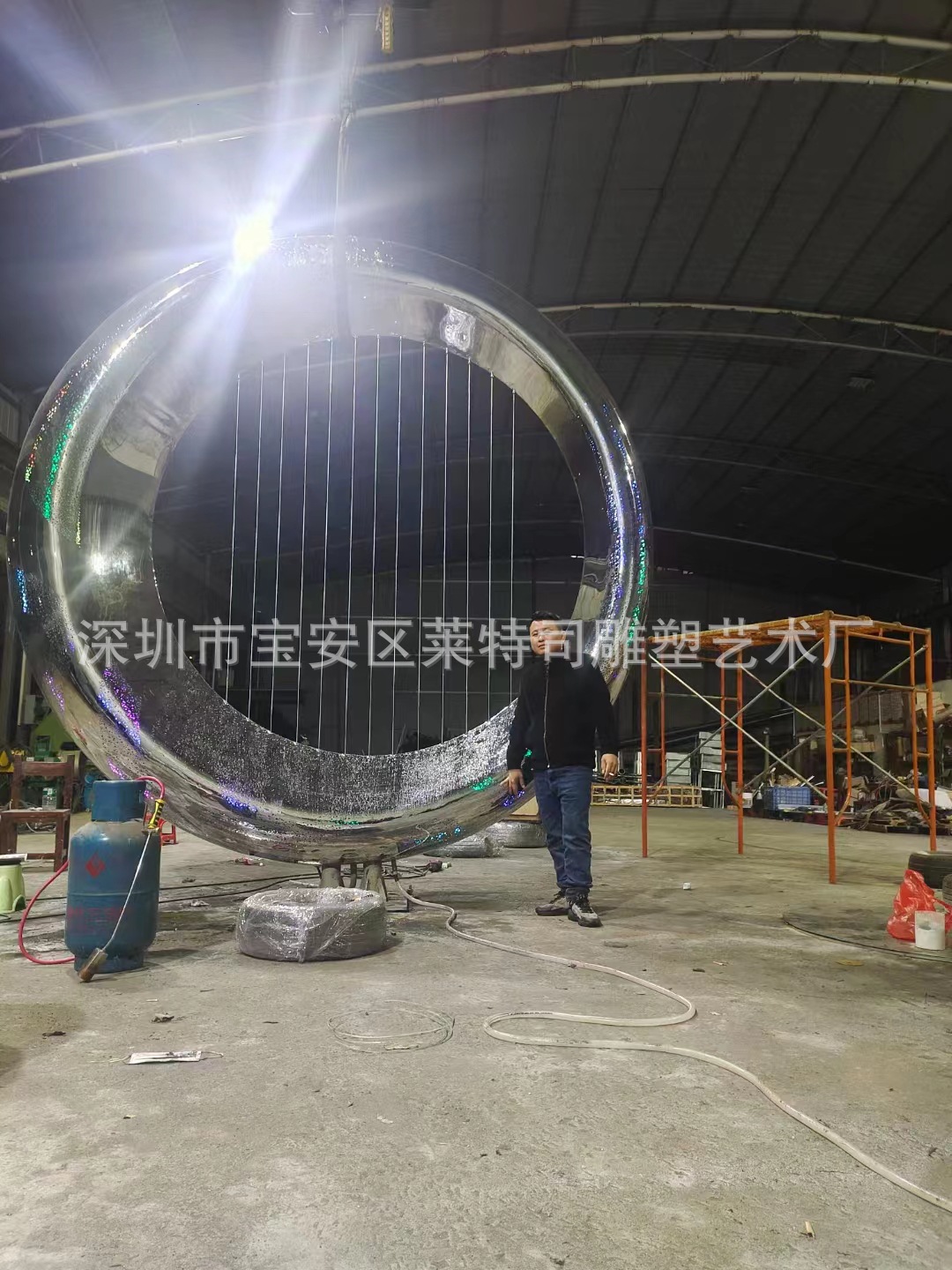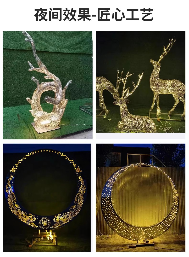 대형 스테인레스 스틸 워터 시닉 링 조각 맞춤형 중공 발광 거울 추상 미술 야외 조경 장식품스토어 가기