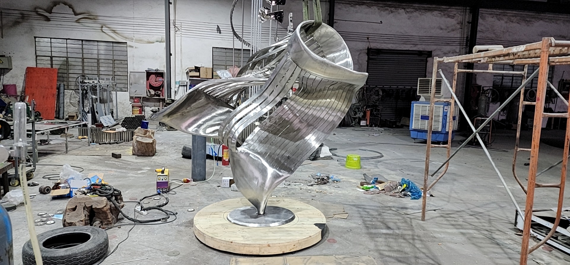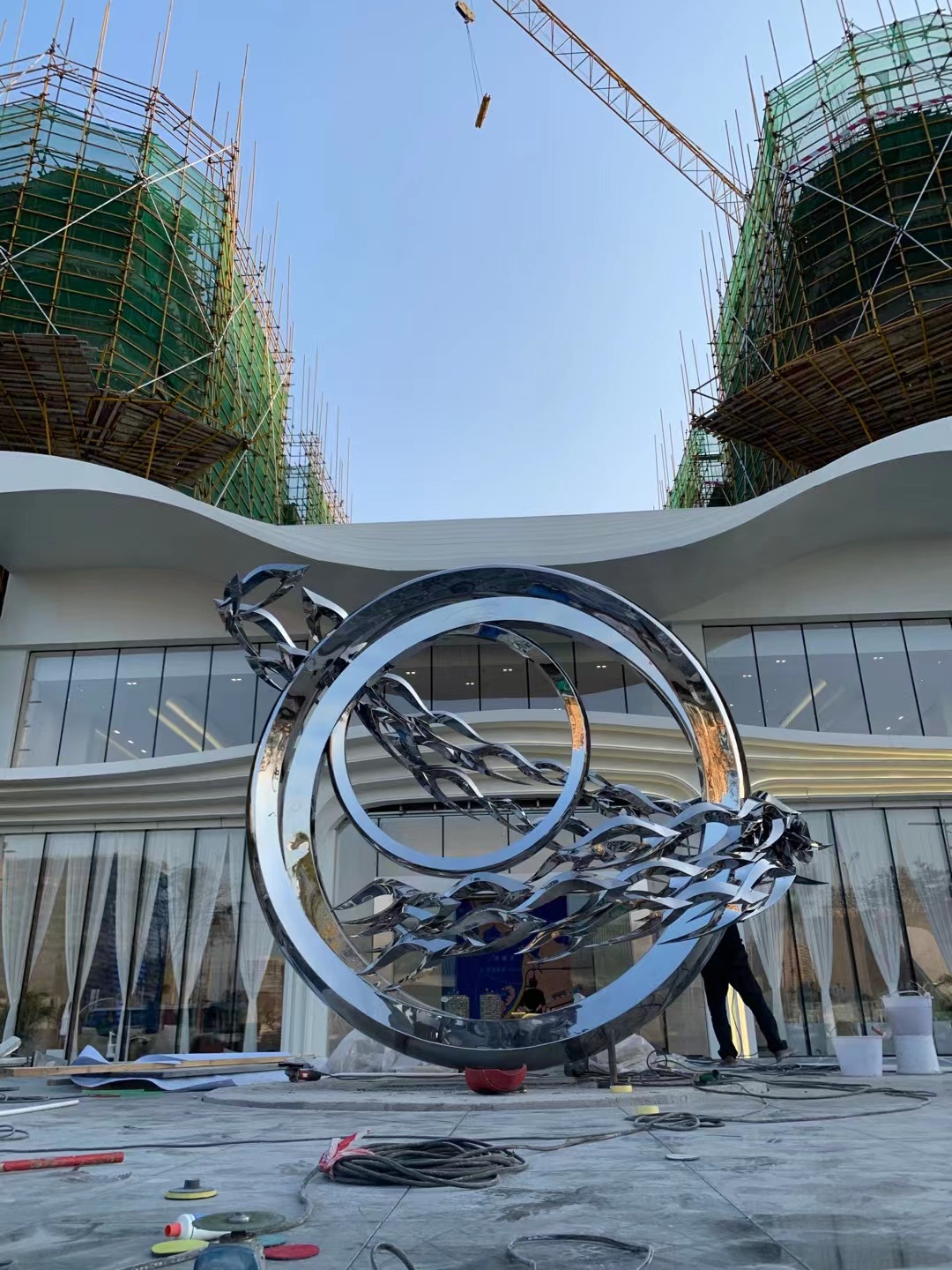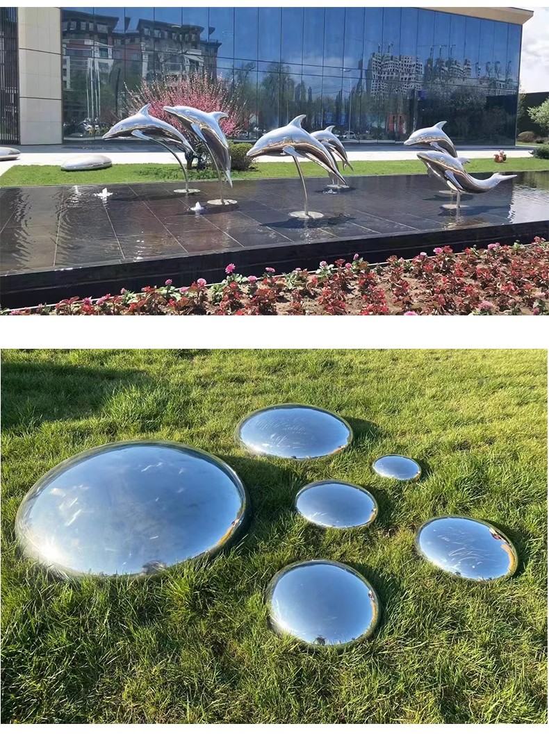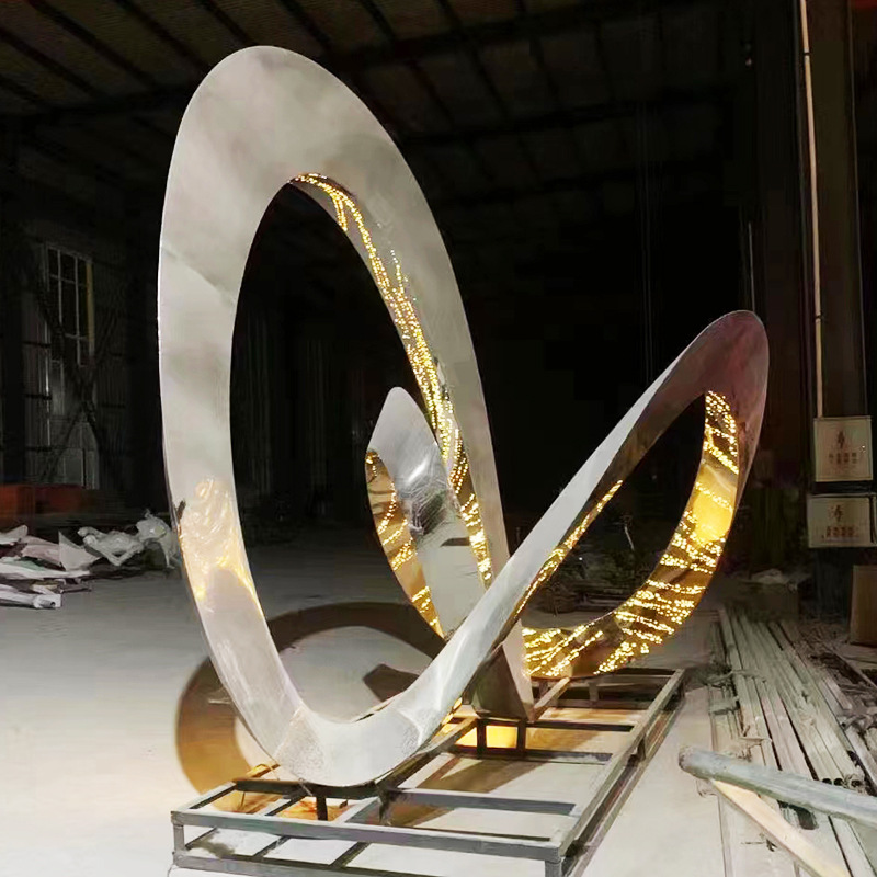 대형 스테인레스 스틸 워터 시닉 링 조각 맞춤형 중공 발광 거울 추상 미술 야외 조경 장식품