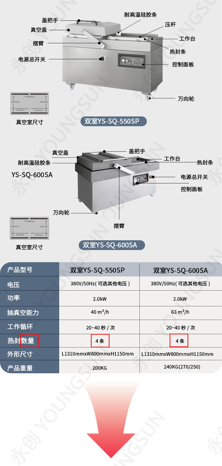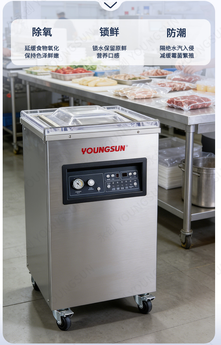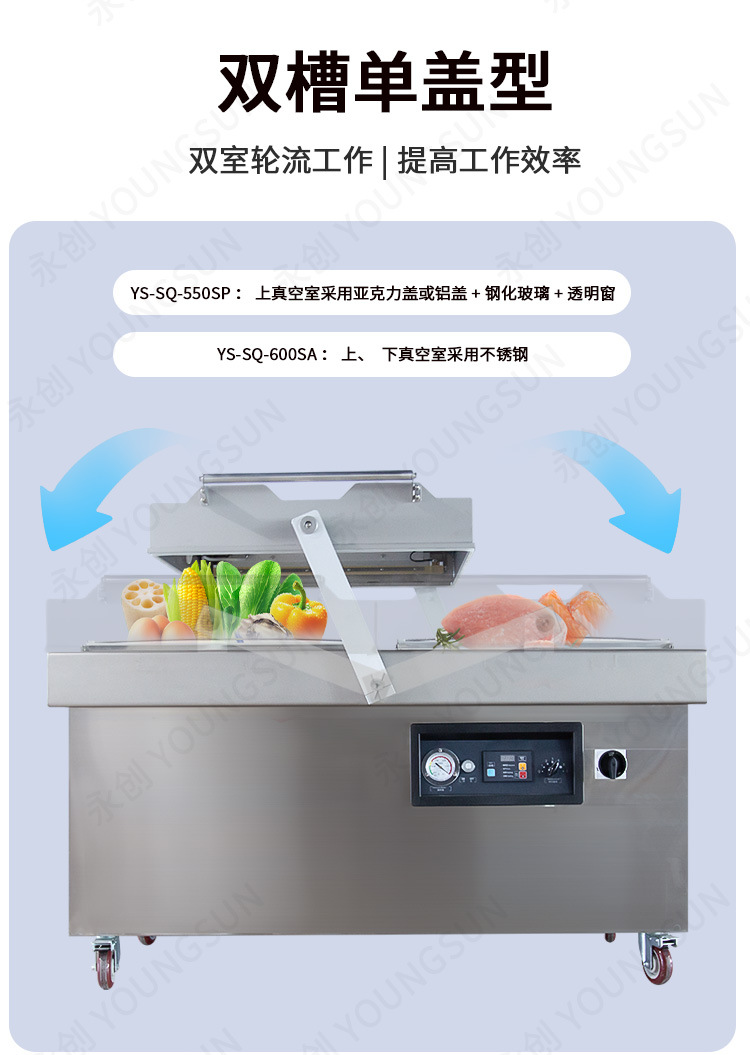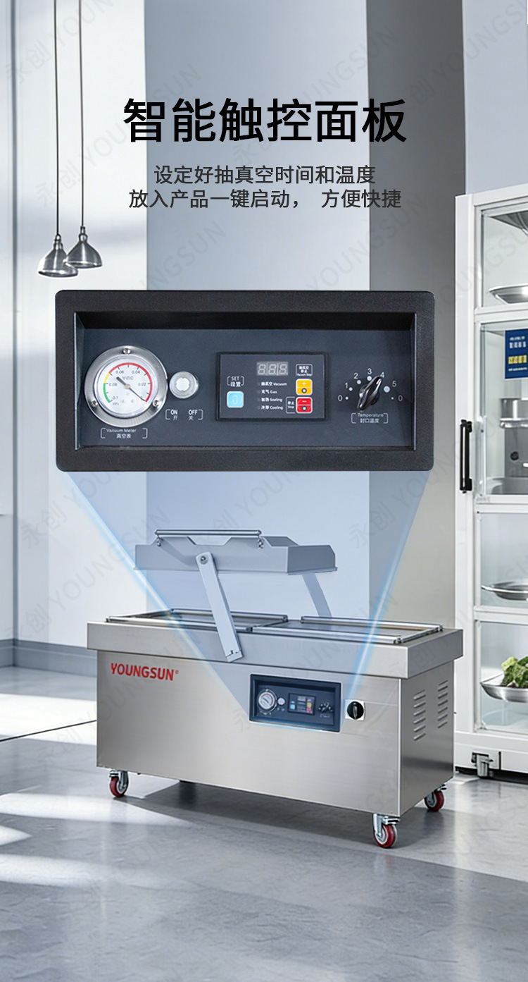 Yongchuang 진공 포장기 열 밀봉 이중 챔버 식품 차 습식 및 건식 이중 용도 완전 자동 산업 등급 대형 흡입스토어 가기
