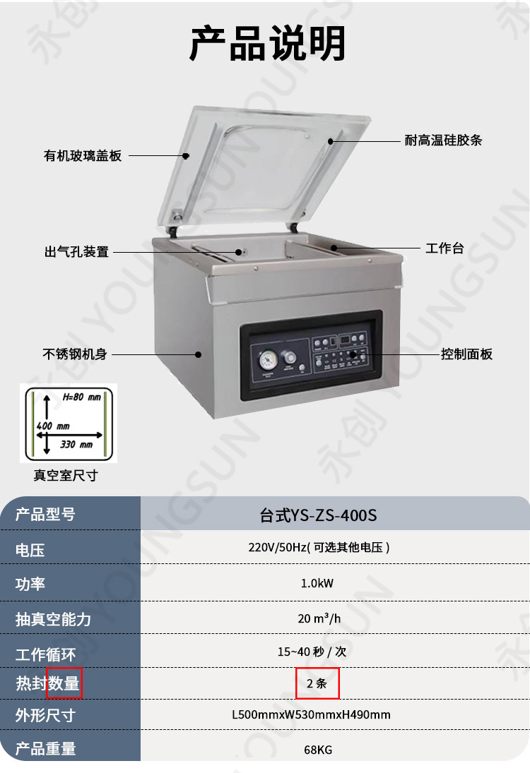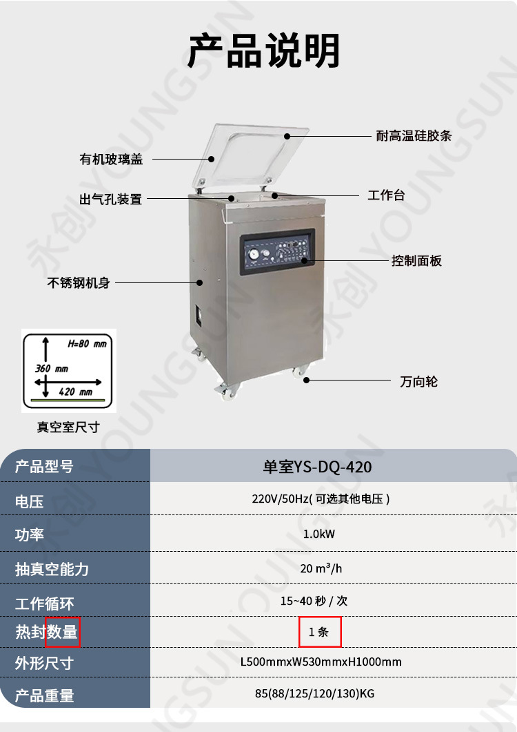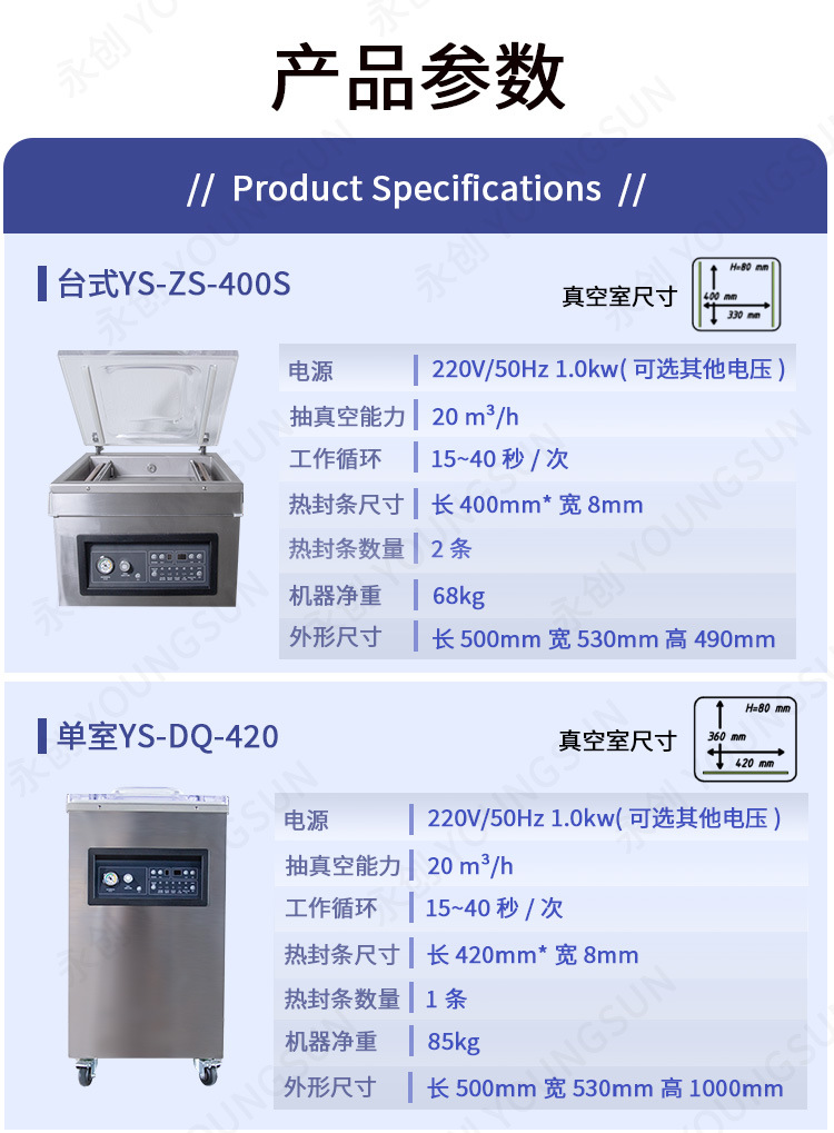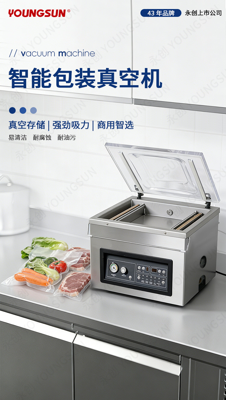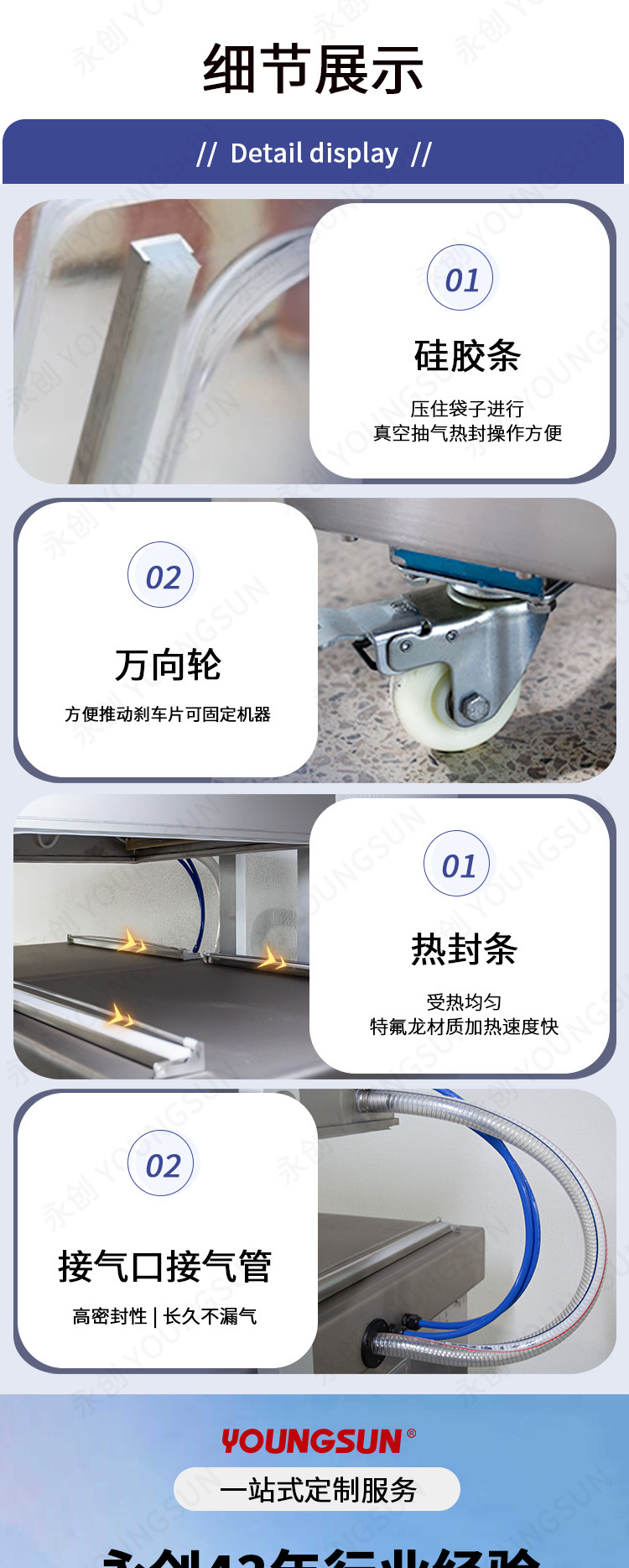 Yongchuang 진공 포장기 열 밀봉 이중 챔버 식품 차 습식 및 건식 이중 용도 완전 자동 산업 등급 대형 흡입스토어 가기
