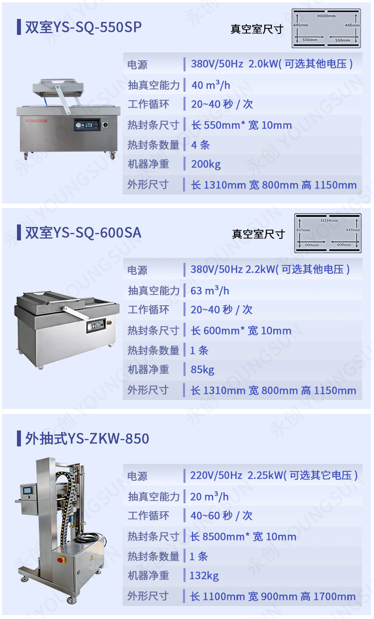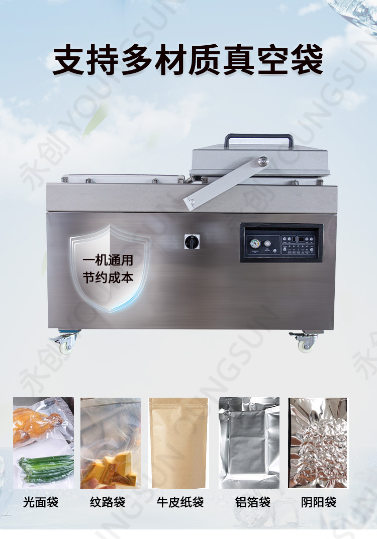 Yongchuang 진공 포장기 열 밀봉 이중 챔버 식품 차 습식 및 건식 이중 용도 완전 자동 산업 등급 대형 흡입