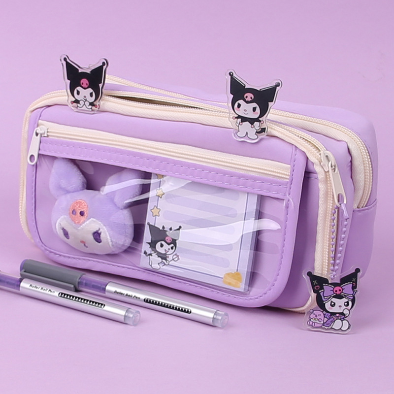• 보라색 필통 + 스티커 10개 + 인형 + 노트 + 펜던트 + 클립 2개