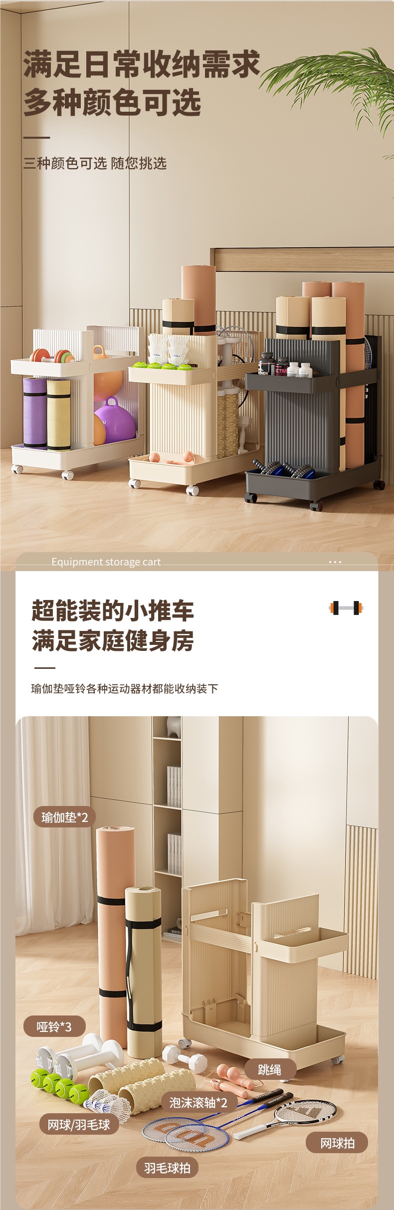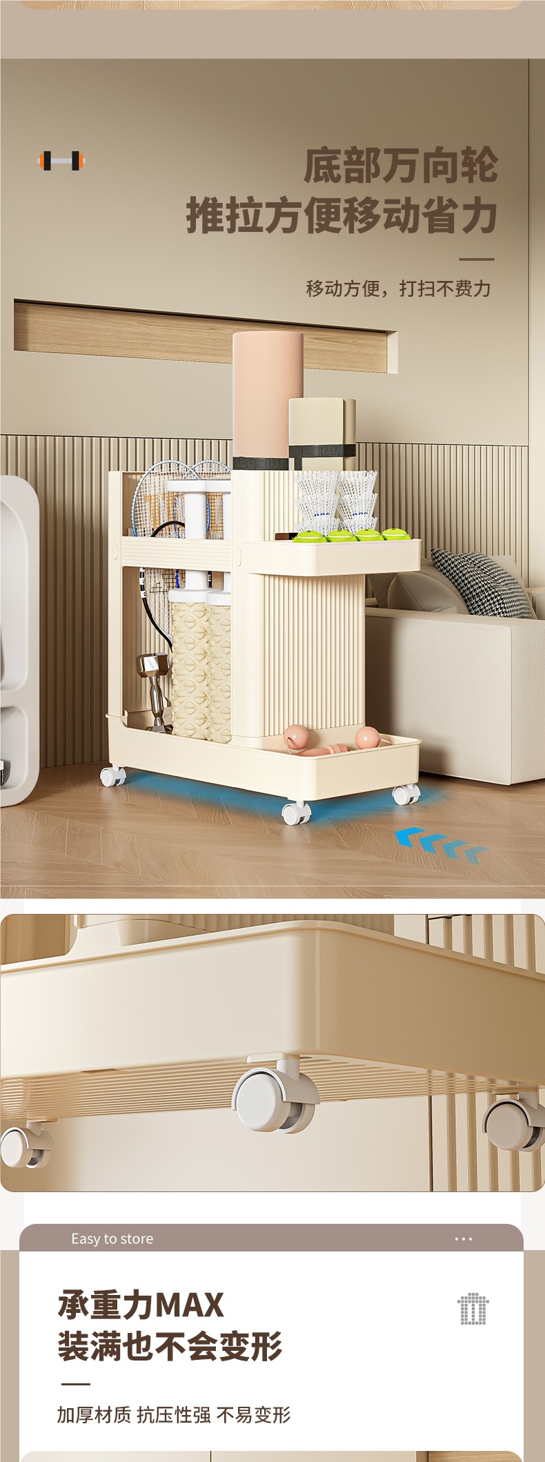 바퀴가 달린 가정용 스포츠 장비 보관 카트 정리 바구니 이동식 배드민턴 라켓 요가 매트 보관 도매스토어 가기