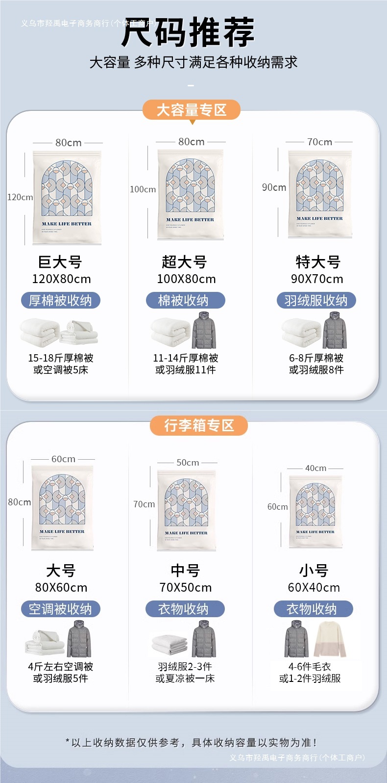 • 6개입[특대형 1개 + 대형 3개 + 중형 2개] 다운 재킷 수납