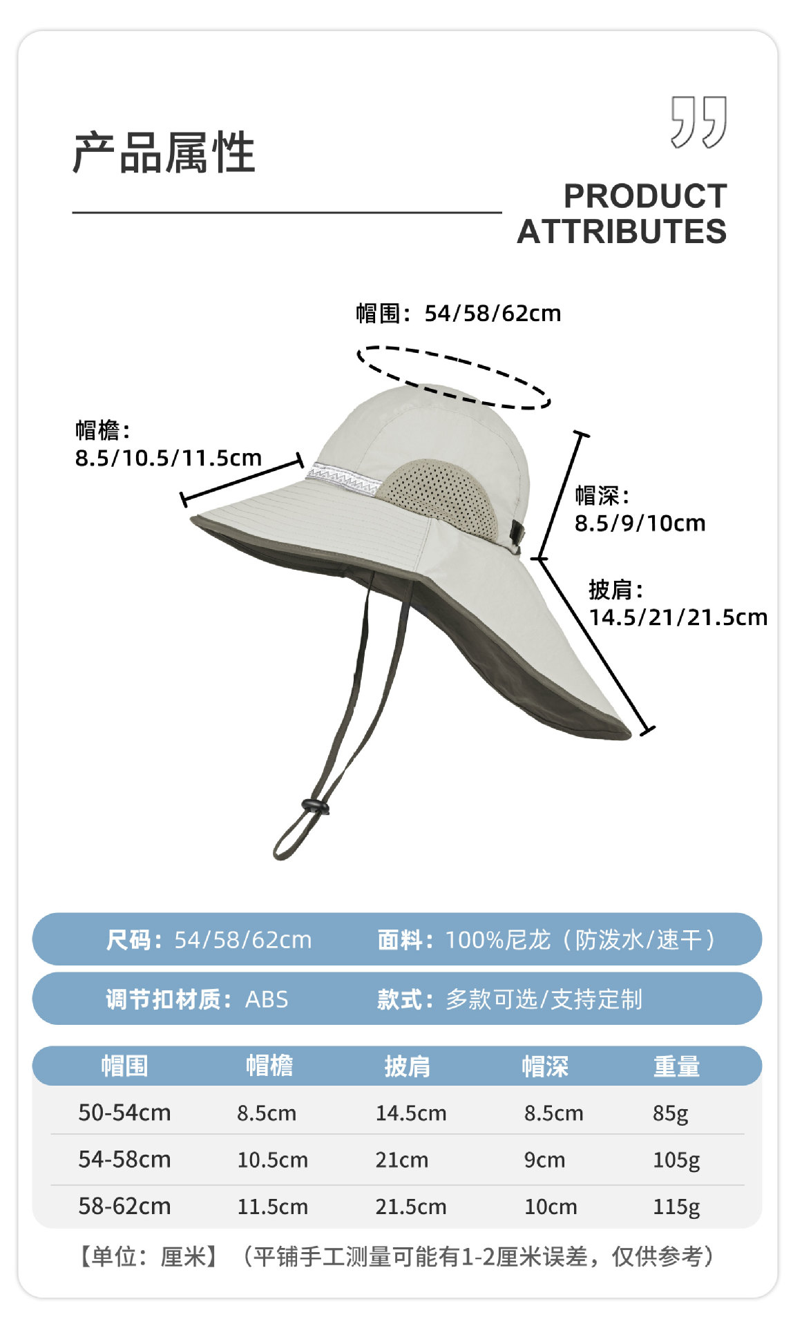 定制登山户外夏季遮阳帽防紫外线速干加长披肩定做凉感尼龙渔夫帽