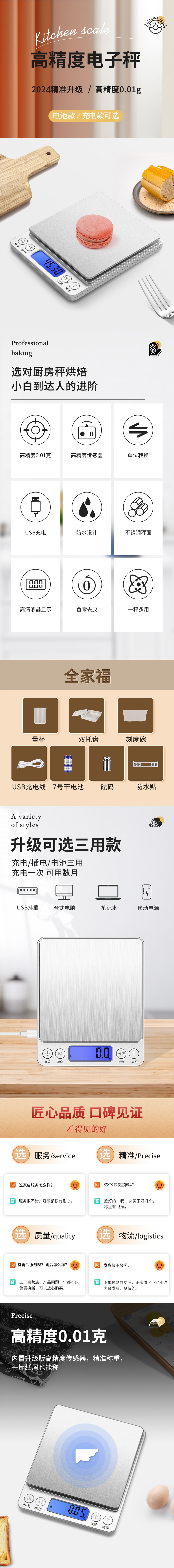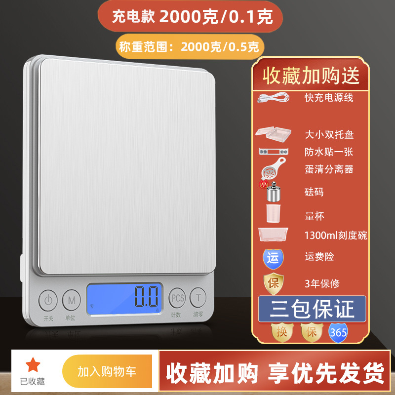• [충전모델] 2000g/0.1g 듀얼 트레이 + 충전 케이블 + 방수 스티커 포함