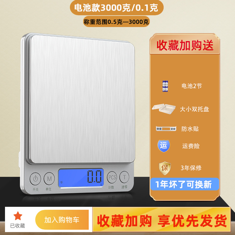 • [배터리 모델] 가성비 좋은 3000g/0.1g 듀얼 트레이 + 건전지 + 방수 스티커 포함