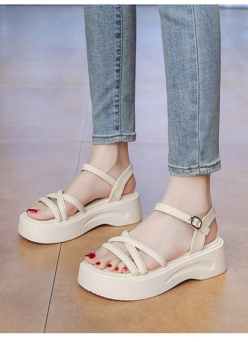 여성용 프렌치 요정 스타일 두꺼운 밑창 다용도 샌들 2025 신상 여름 부드러운 밑창 스커트 로마 비치 슈즈스토어 가기