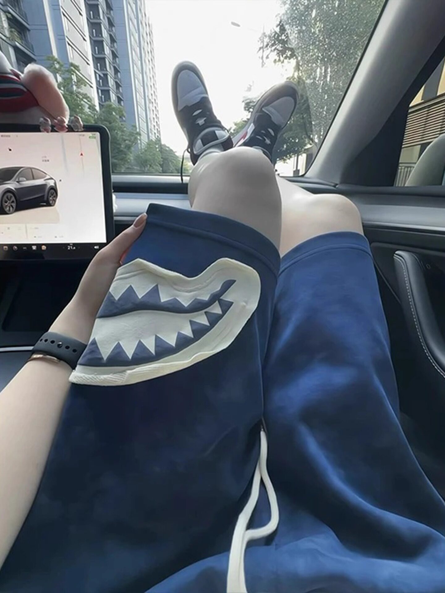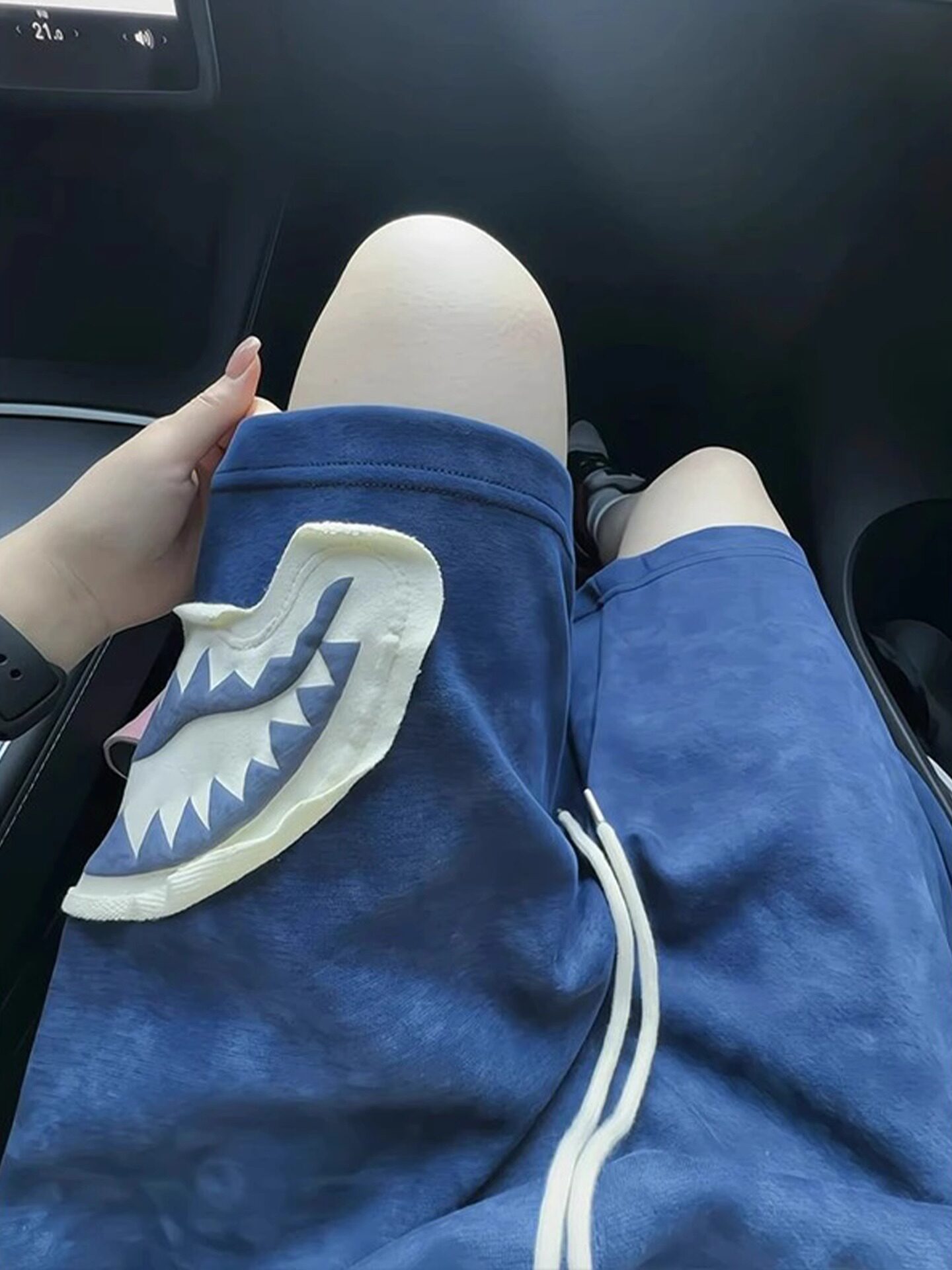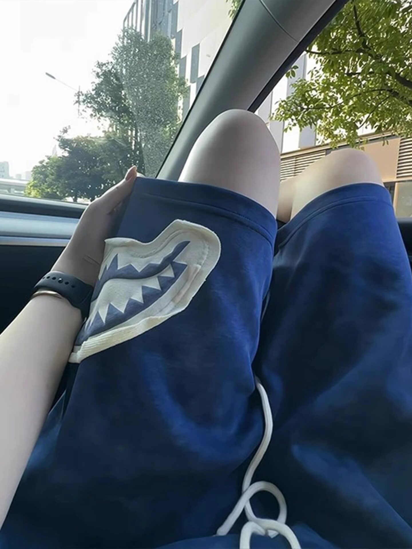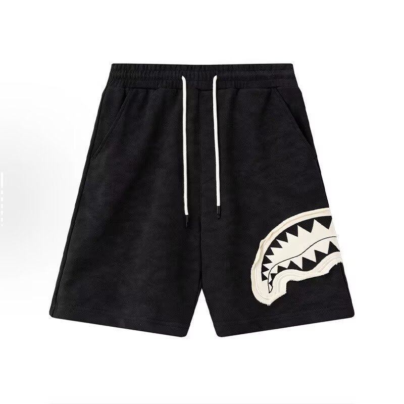 네이비 블루 패치 상어 입 반바지 남성 여름 느슨한 통기성 스트레이트 바지 캐주얼 스포츠 5부 바지스토어 가기