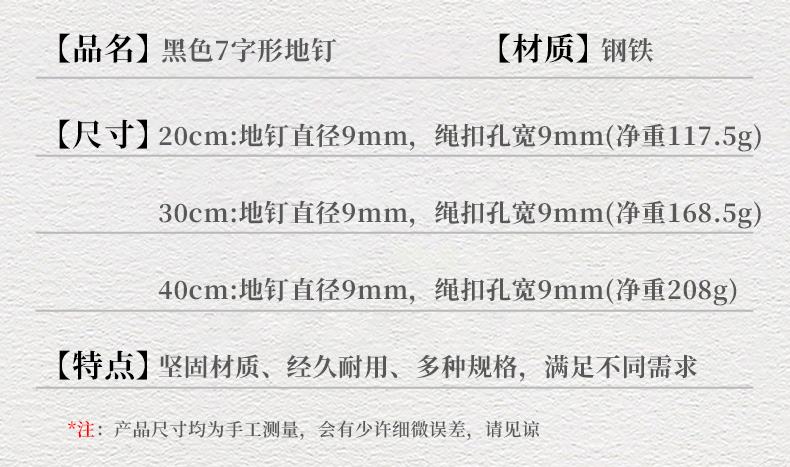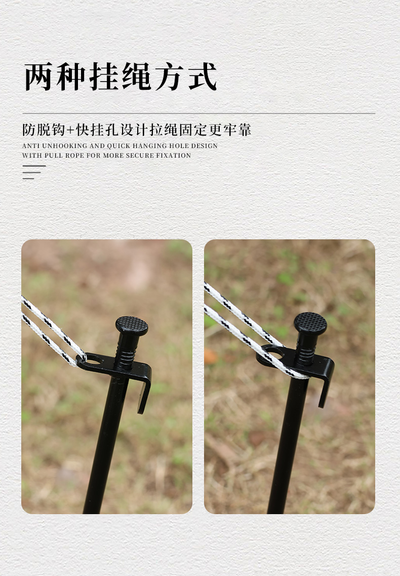 • 25cm 검정색 접지 못 6개 + 주황색 롤러 스케이트 버클 방풍 로프 6개