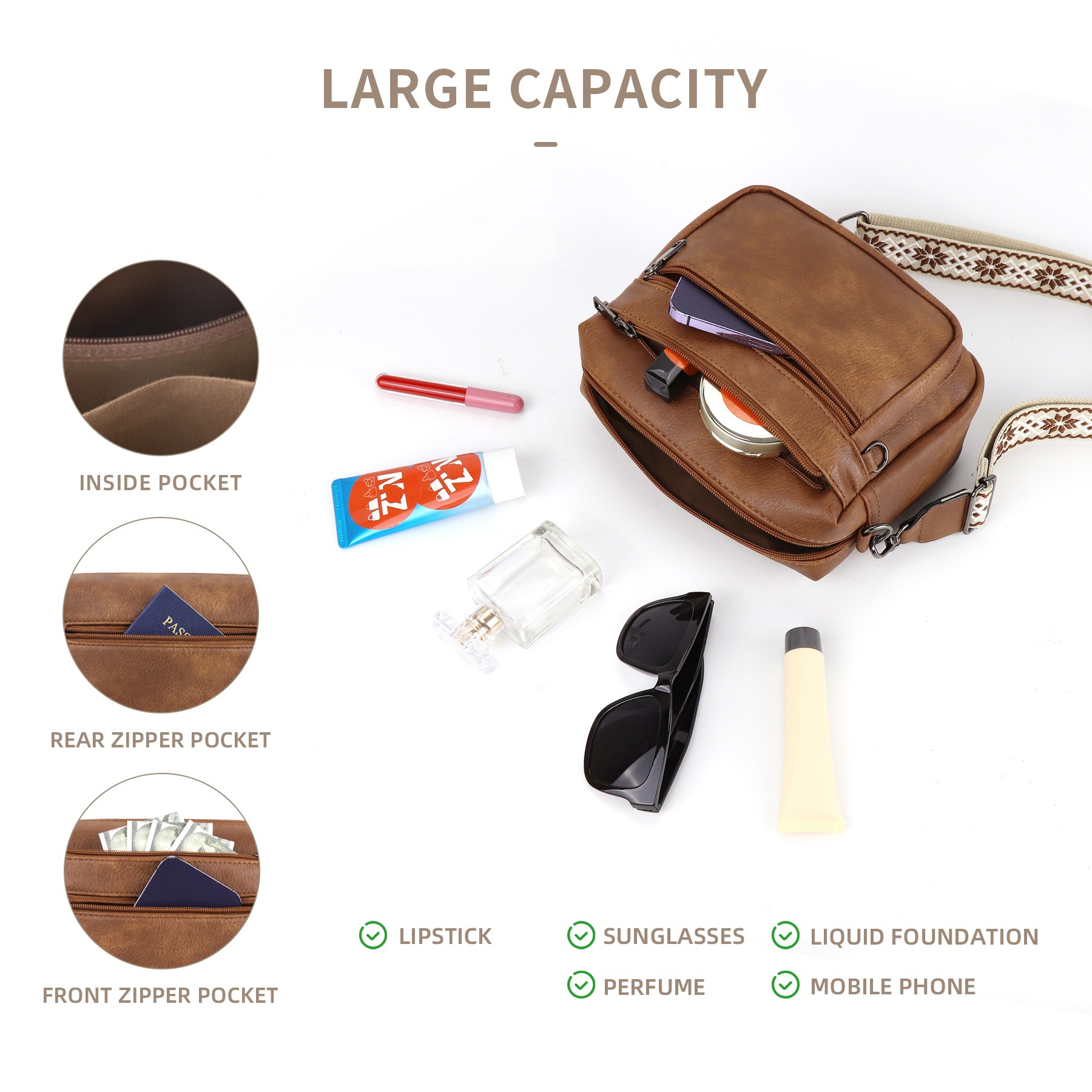 스팟 크로스백, 스퀘어백, PU 숄더백, 지갑, 유럽 및 미국에서 인기 있는 컬러 매칭, 다기능 지퍼 조절 스트랩