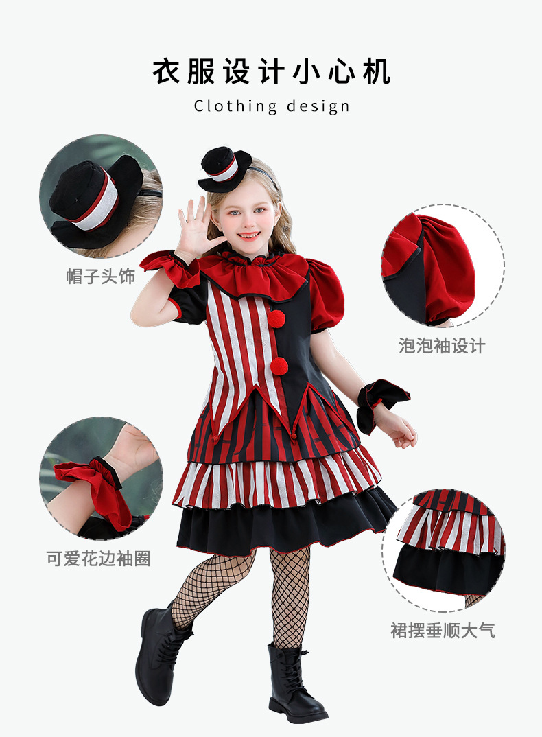 할로윈 어린이 의상 광대 의상 서커스 파티 재미 있은 의상 카니발 공연 의상 소녀 드레스스토어 가기