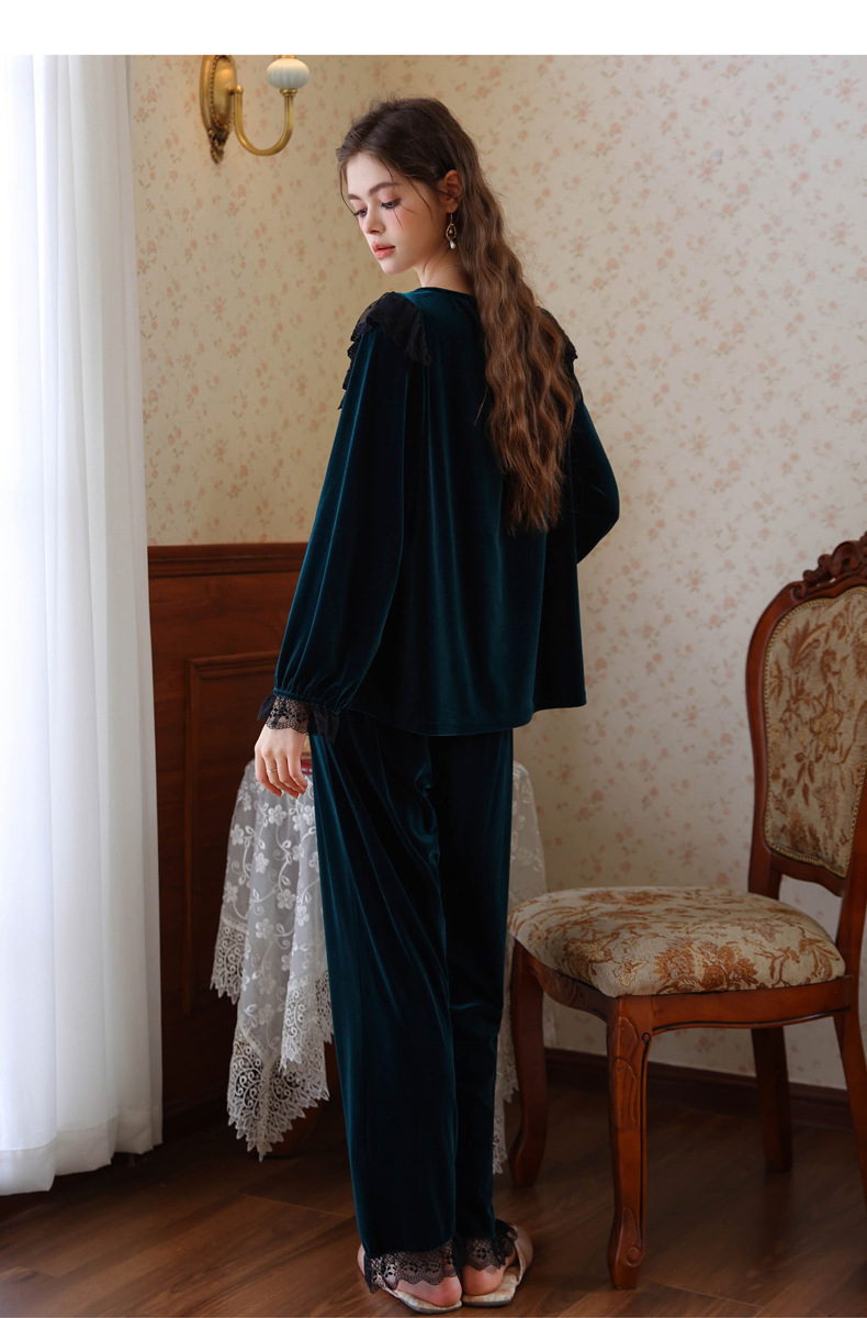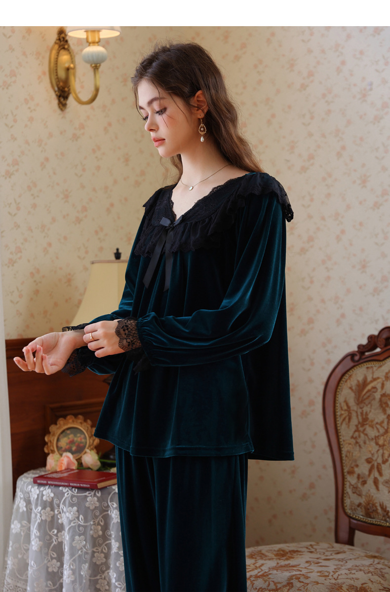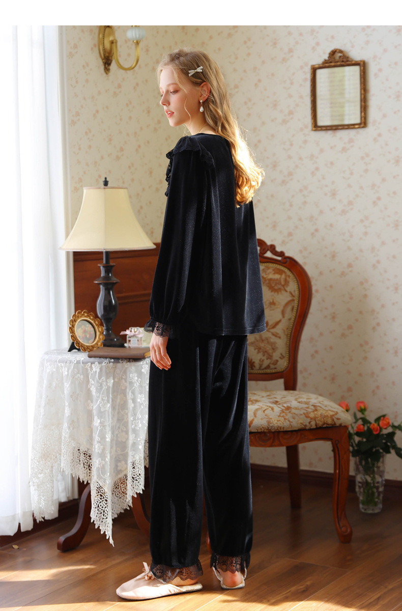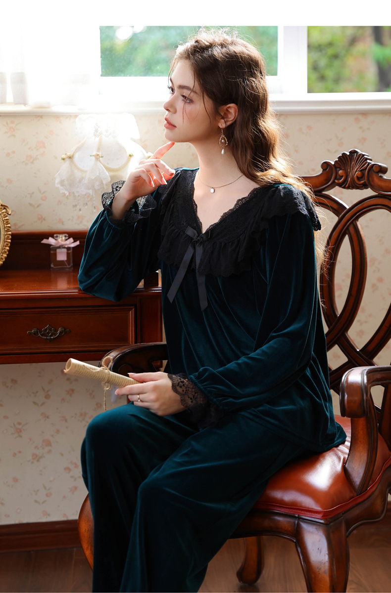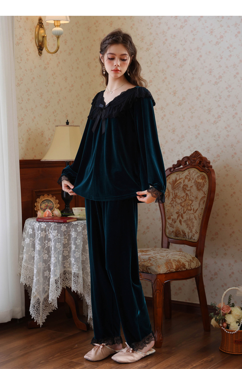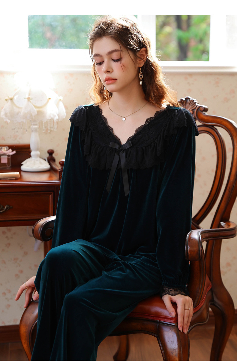 새로운 잠옷 가을, 겨울 프랑스 복고풍 공주 긴팔 바지 달콤한 따뜻한 느슨한 대형 크로스 보드 벨벳 홈 의류