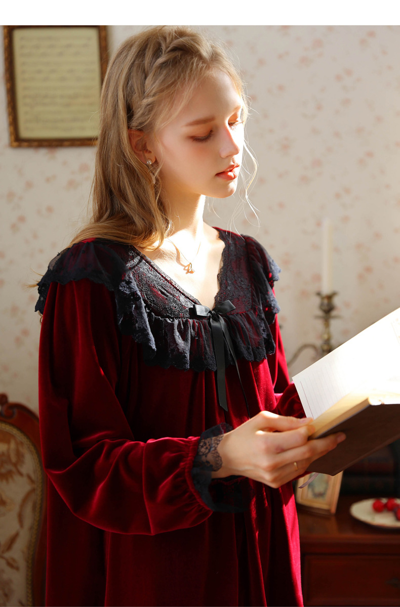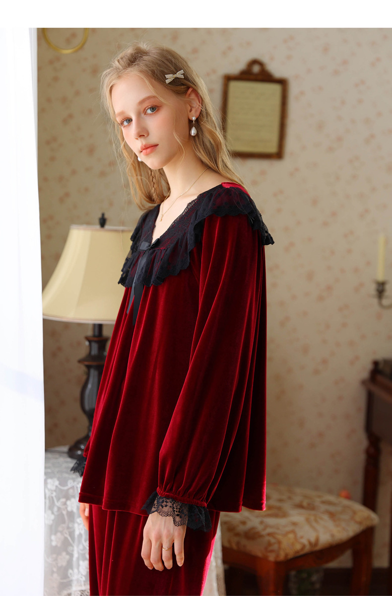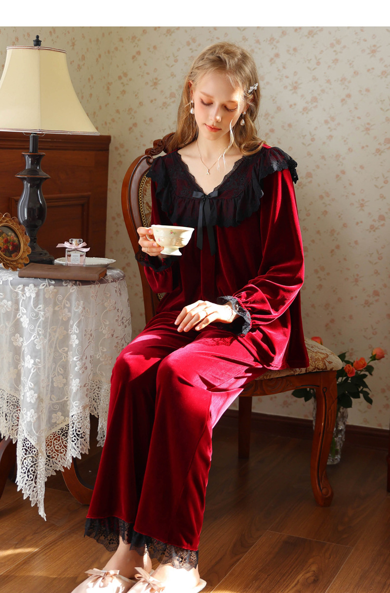 새로운 잠옷 가을, 겨울 프랑스 복고풍 공주 긴팔 바지 달콤한 따뜻한 느슨한 대형 크로스 보드 벨벳 홈 의류스토어 가기