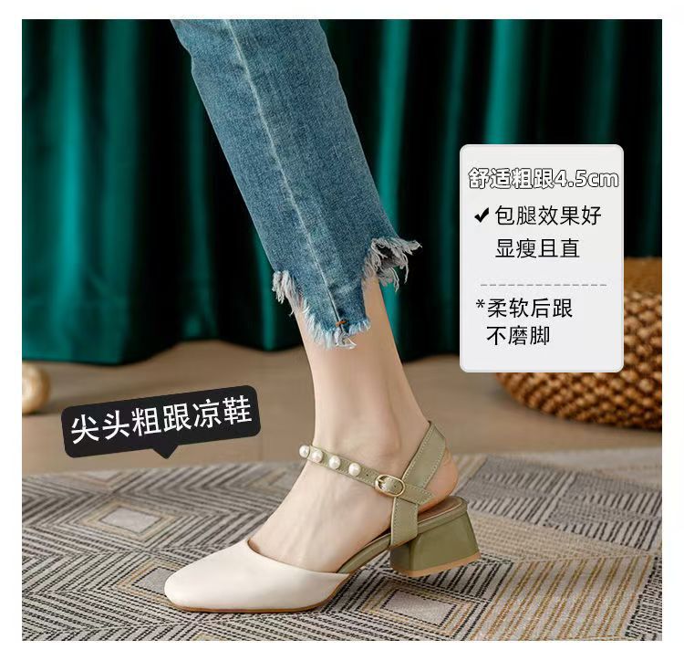 2025년 여름 여성을 위한 샌들 새로운 스타일의 스퀘어 토 버클 스트랩 두꺼운 굽 중간 굽 토 펄 젠틀 로마 스타일 여성 신발스토어 가기