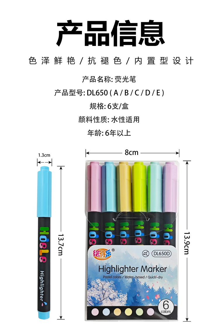 Hedele DL650 수성 소프트 라이트 형광펜 diy 핸드북 낙서 사무실 마커 학생 형광펜 30 색