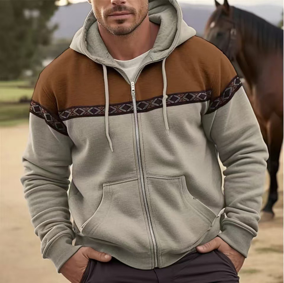 국경을 넘는 새로운 캐주얼 트렌디 스웨트 셔츠 레트로 3D 남성용 후드 지퍼 셔츠 유럽과 미국의 스트리트웨어