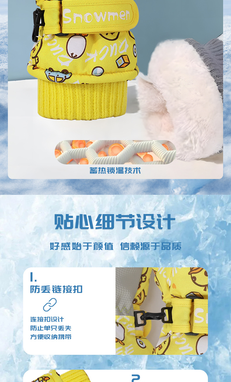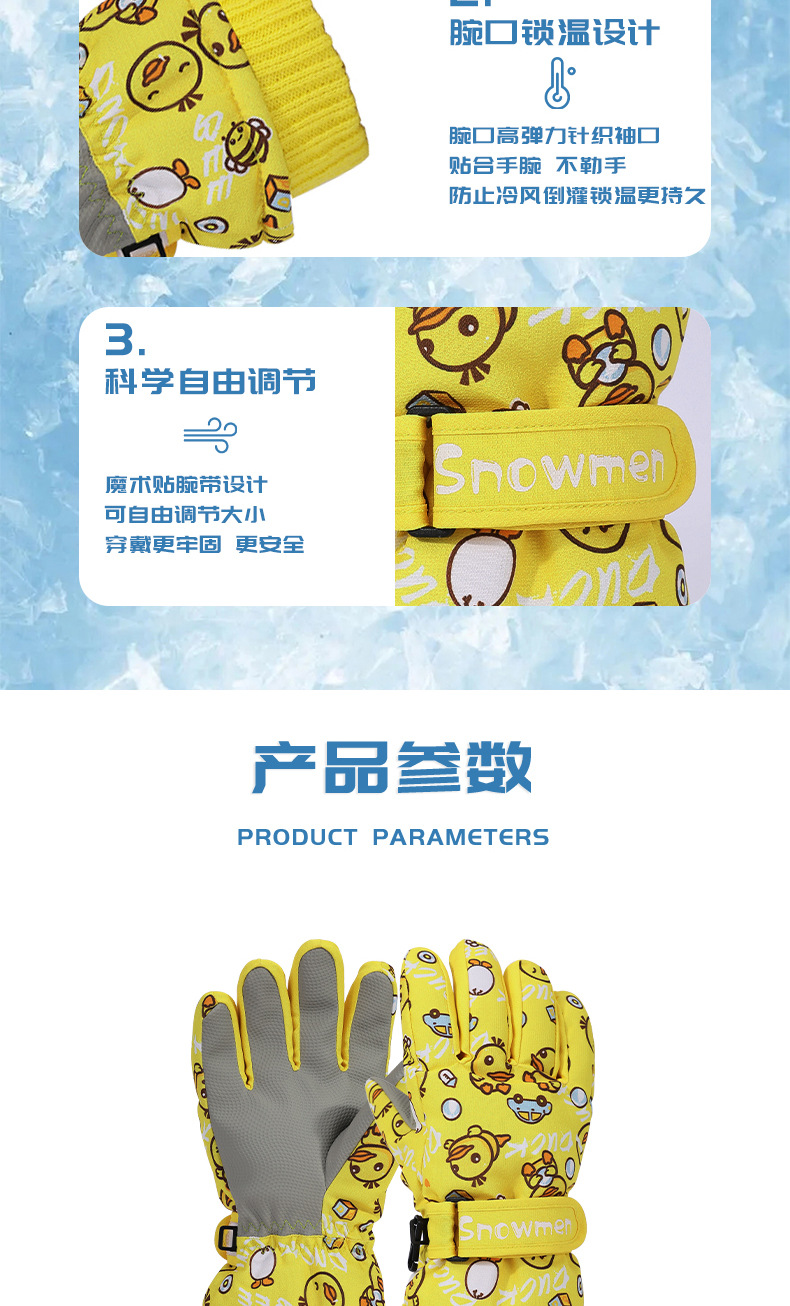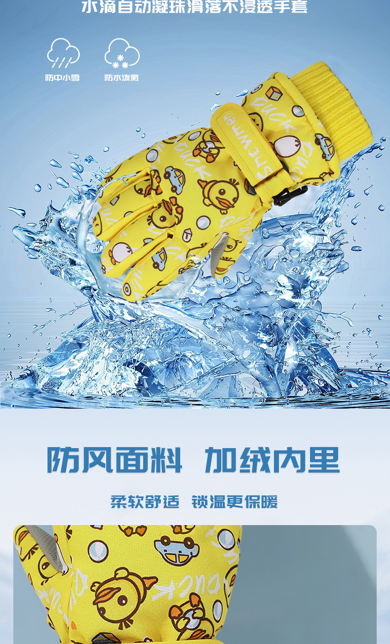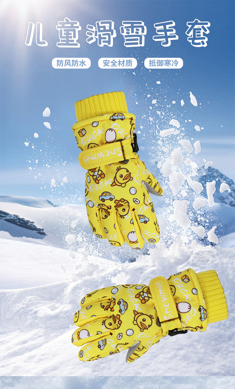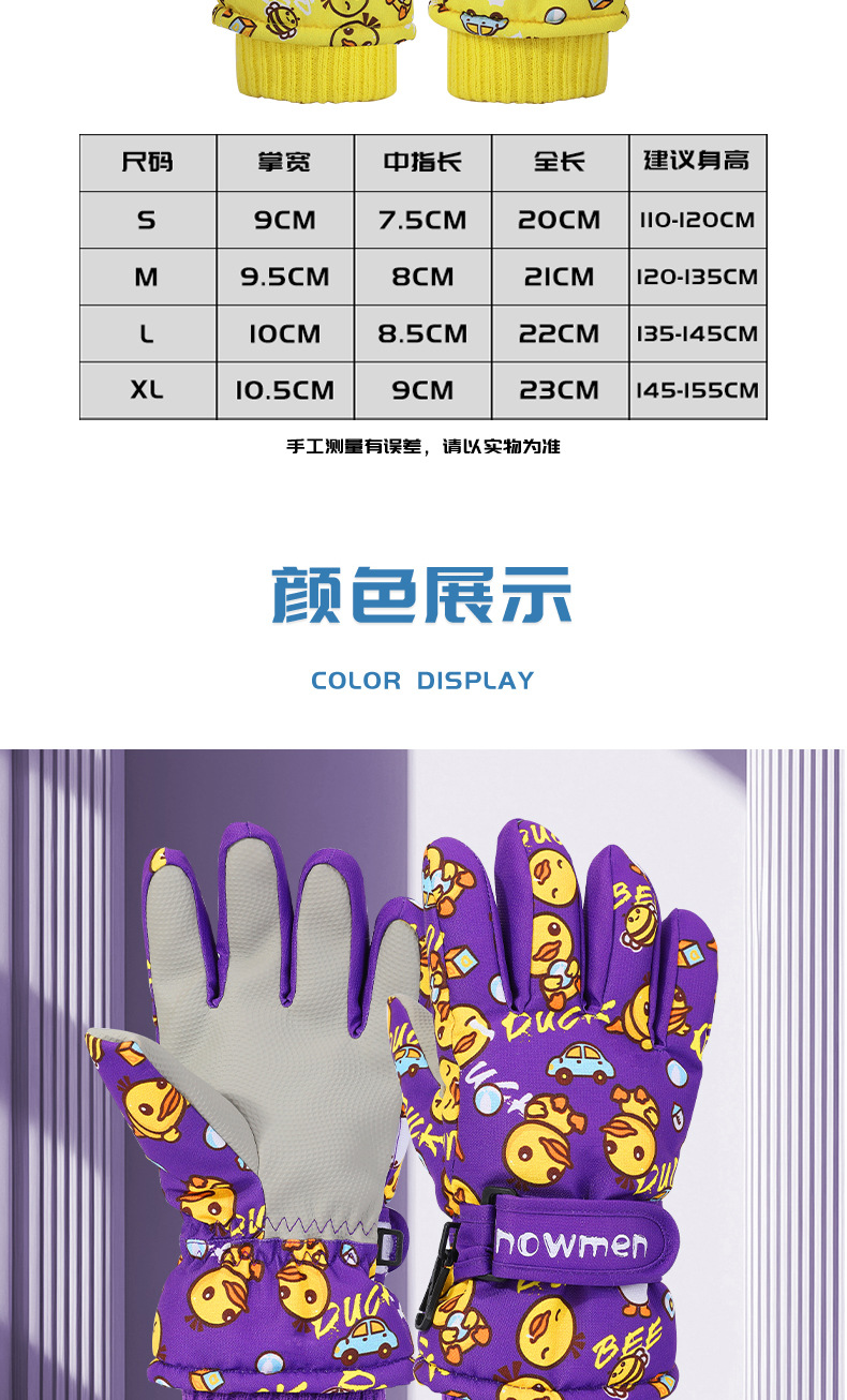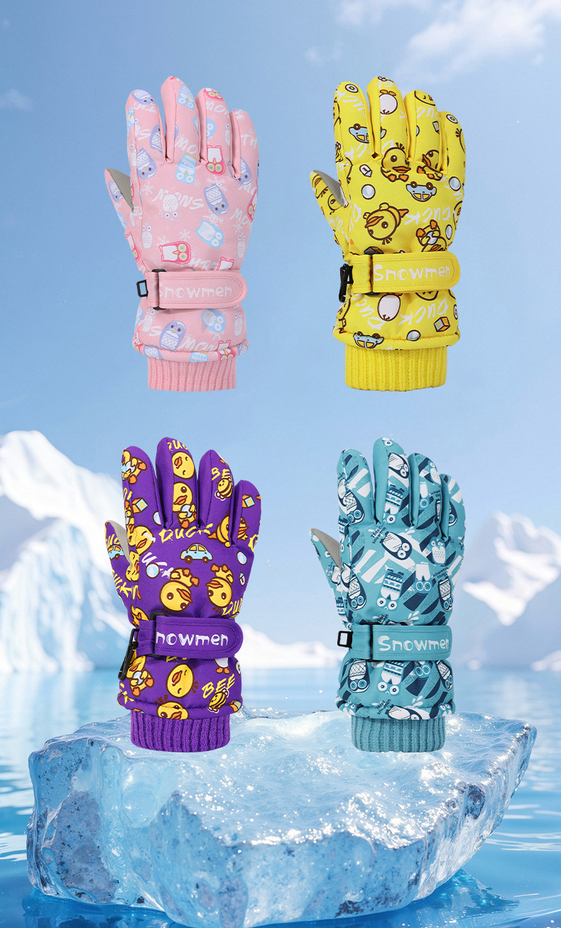 어린이 겨울 다섯 손가락 만화 장갑 스키 장갑 따뜻하고 방풍, 방수, 미끄럼 방지, 두껍고 벨벳과 면 어린이 스타일