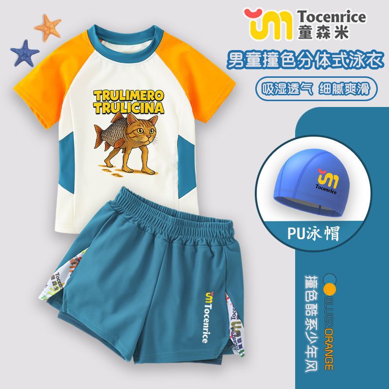 Tungtungsahur 어린이 수영복 여름 수영복 스플릿 소년 수영복 세트 신규