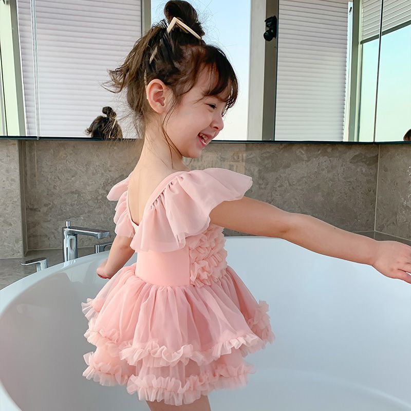 어린이 수영복, 여아, 달콤하고 패셔너블한 베이비 원피스 레이스 드레스 스타일, 어린이 및 중년 여아를 위한 귀여운 수영복
