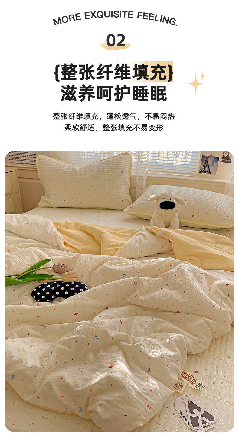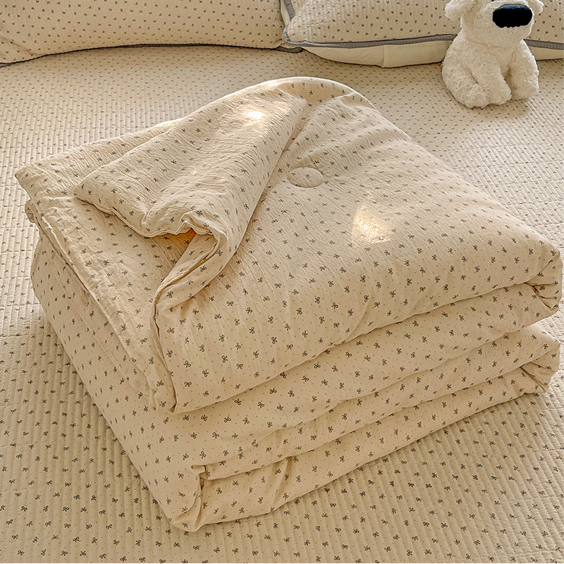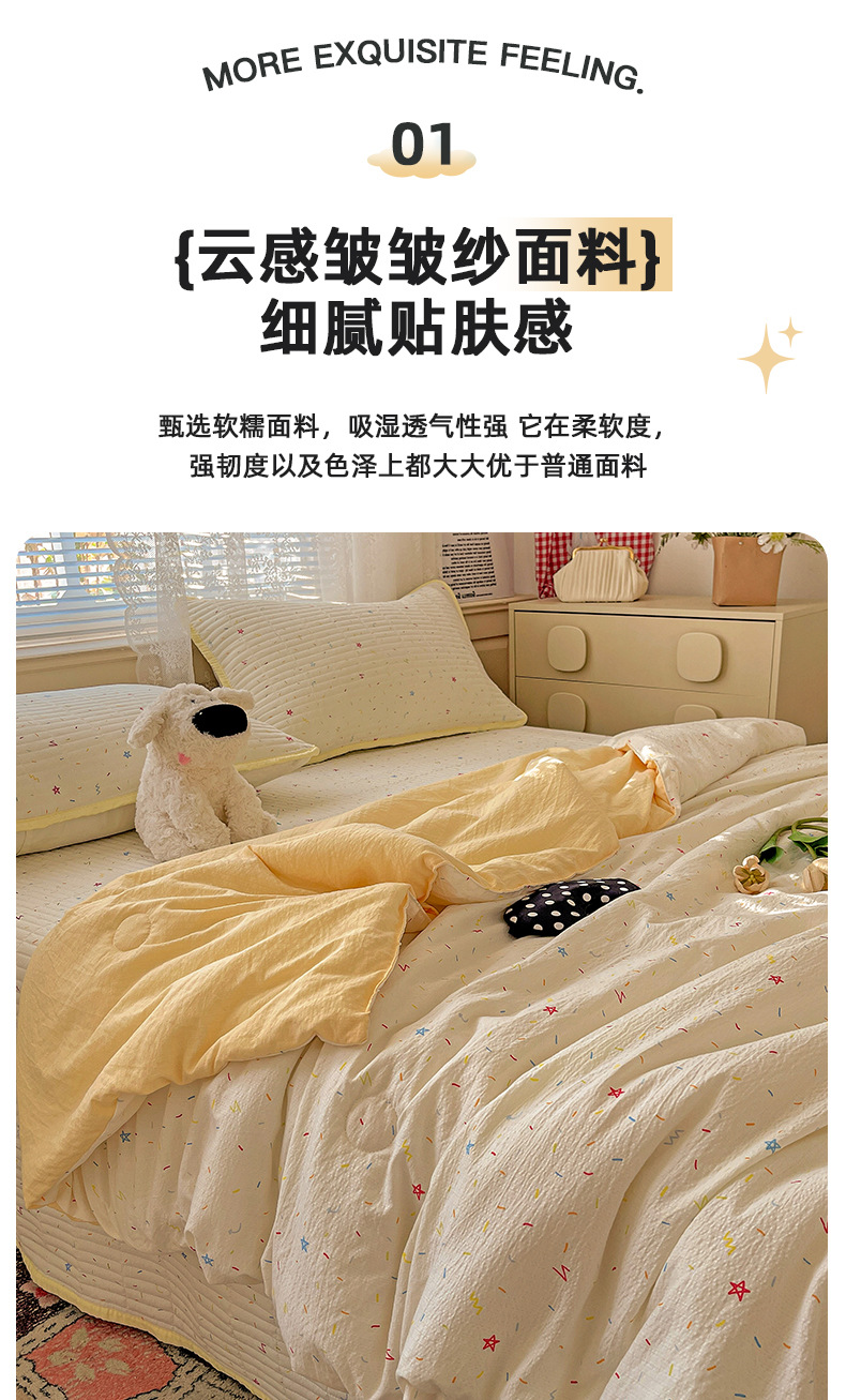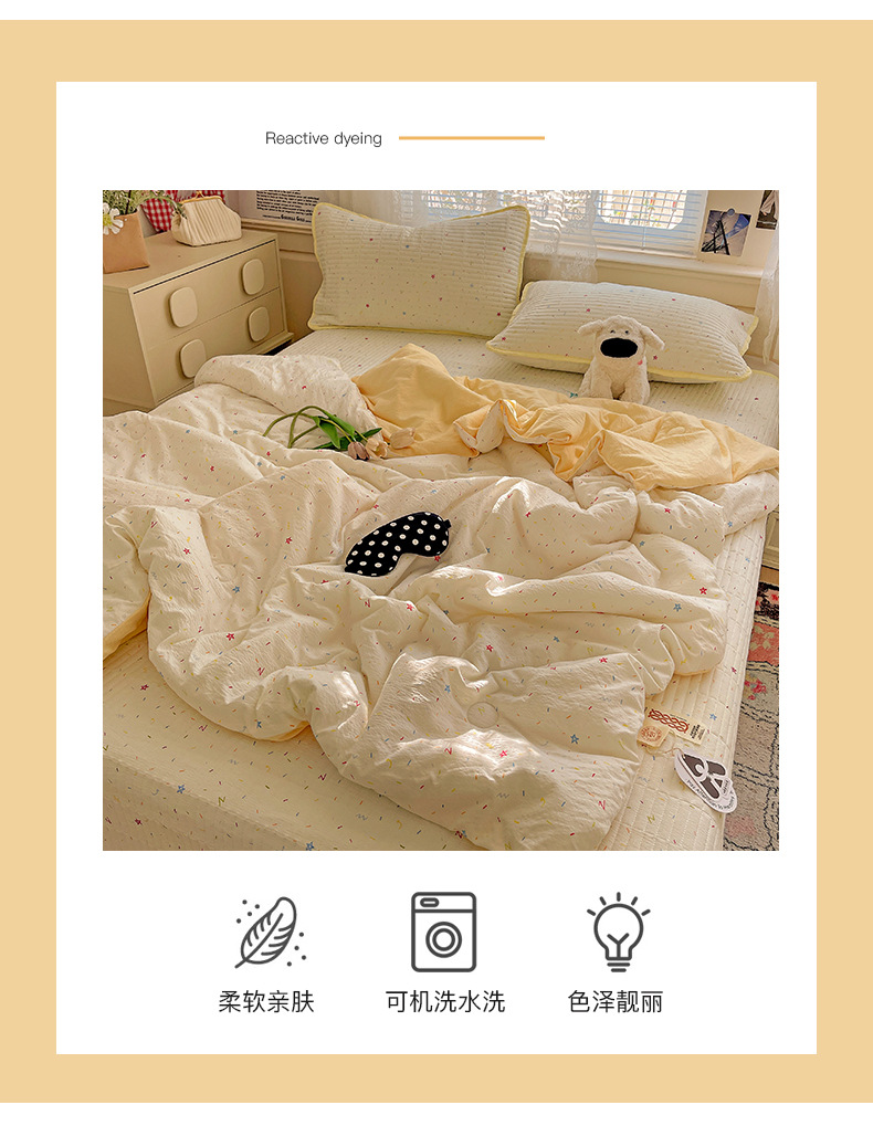 인스 스타일 주름진 거즈 여름 시원한 이불 4피스 세트 얇은 에어컨 이불 싱글 및 더블 여름 기계 세탁 가능 2025 새로운 스타일