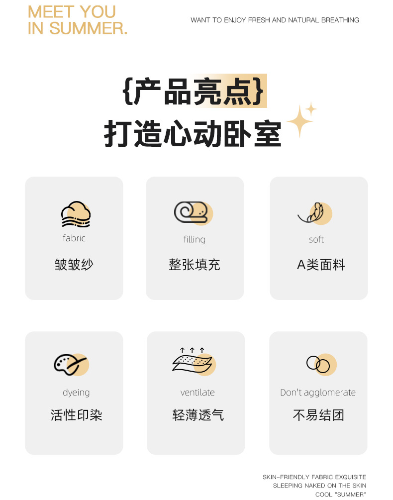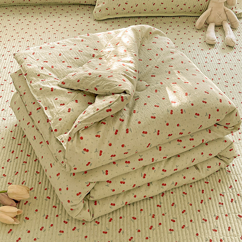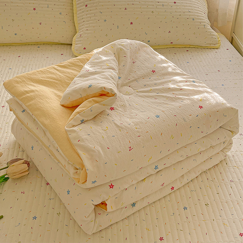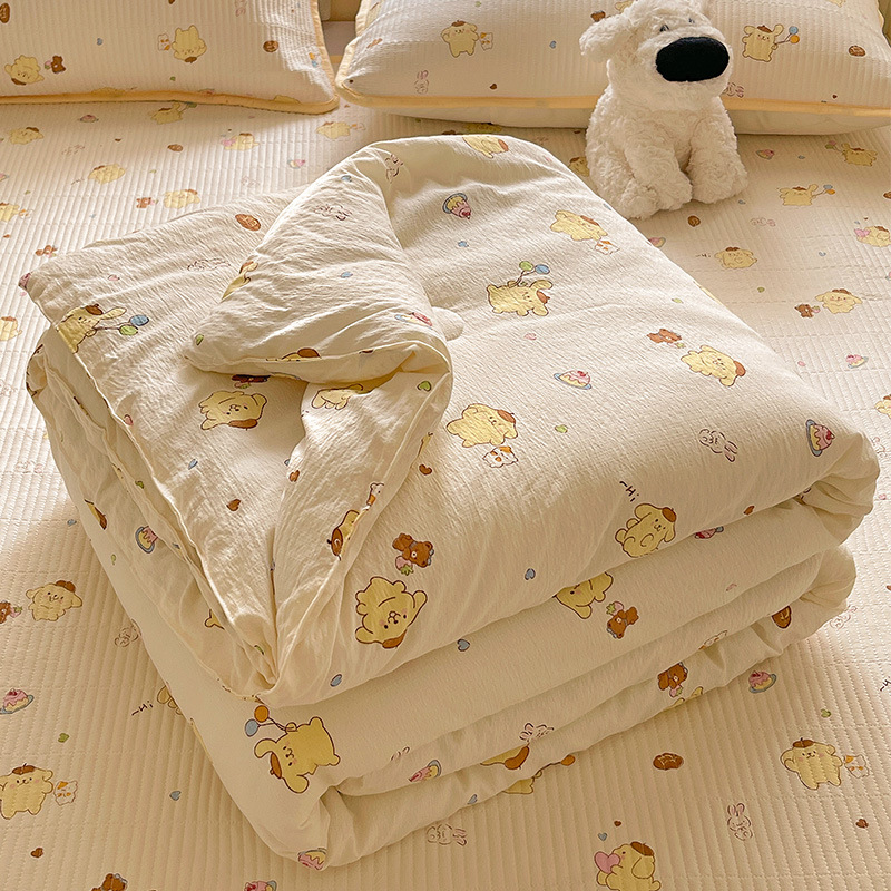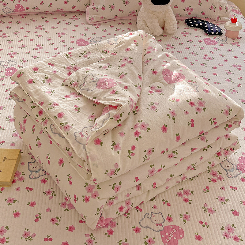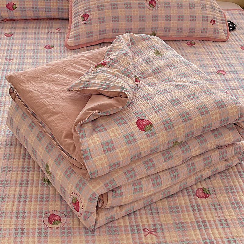 인스 스타일 주름진 거즈 여름 시원한 이불 4피스 세트 얇은 에어컨 이불 싱글 및 더블 여름 기계 세탁 가능 2025 새로운 스타일