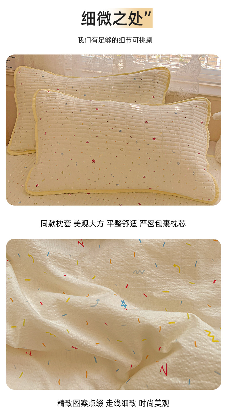 인스 스타일 주름진 거즈 여름 시원한 이불 4피스 세트 얇은 에어컨 이불 싱글 및 더블 여름 기계 세탁 가능 2025 새로운 스타일스토어 가기