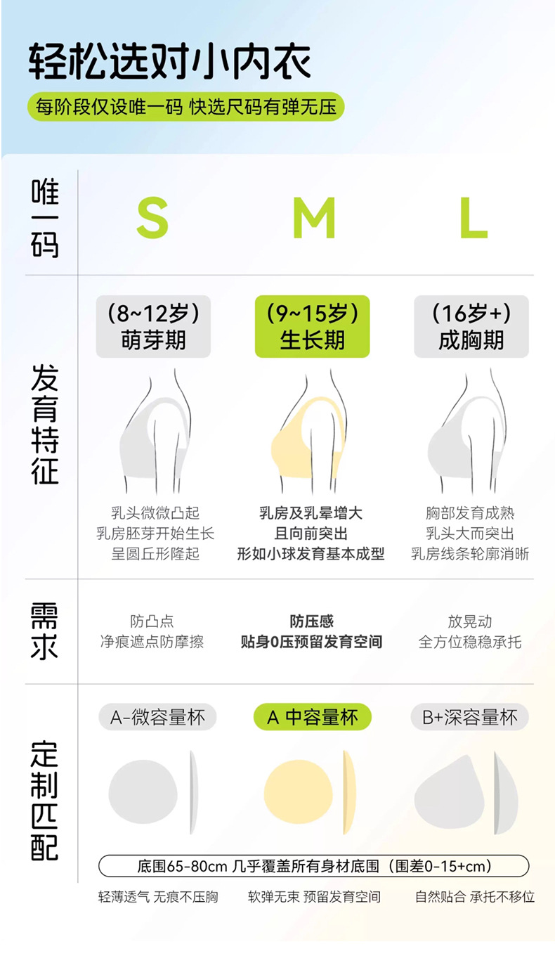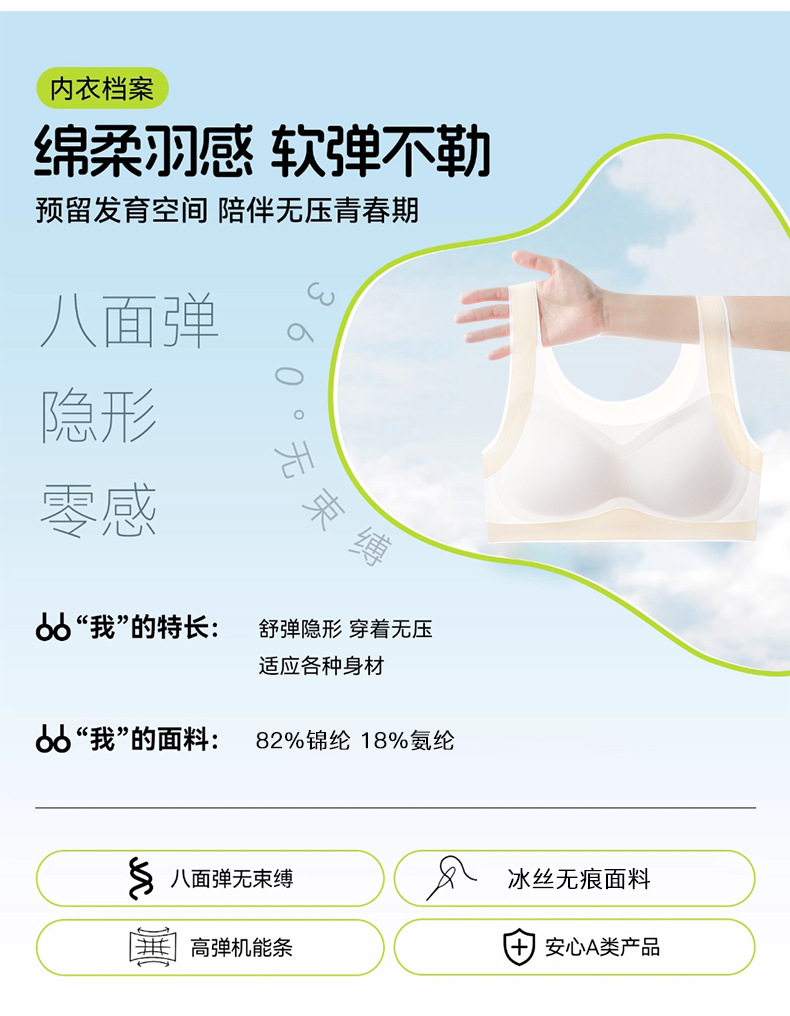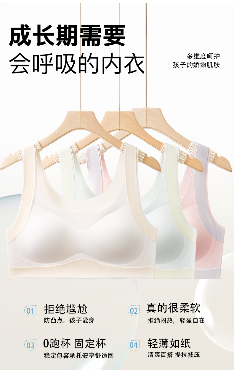 여아발달기 속옷, 여학생, 중학생, 고등학생, 스포츠, 가볍고 통기성, 10~18세, 조끼형 여아