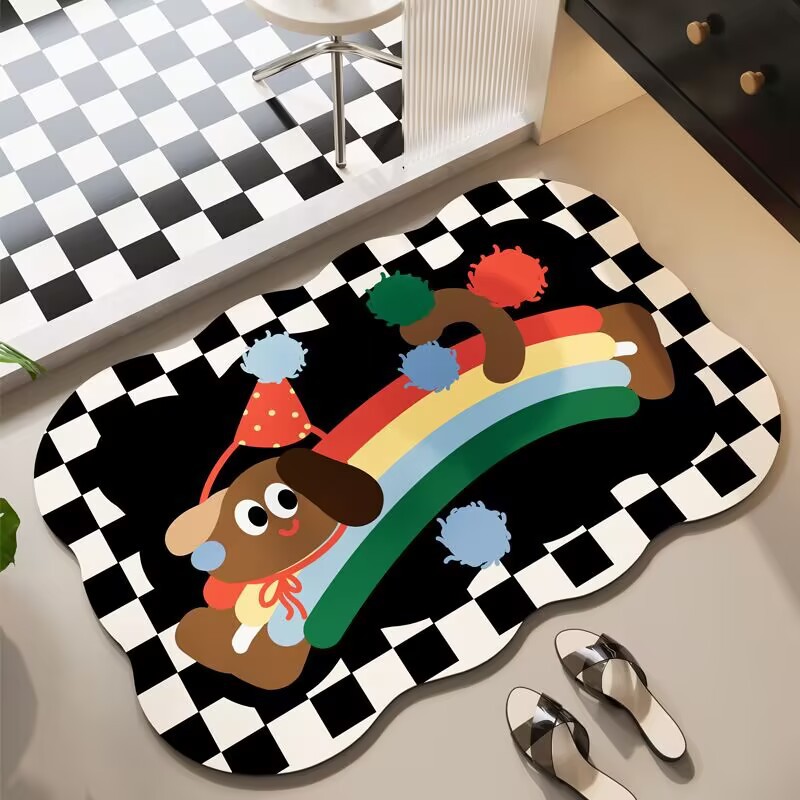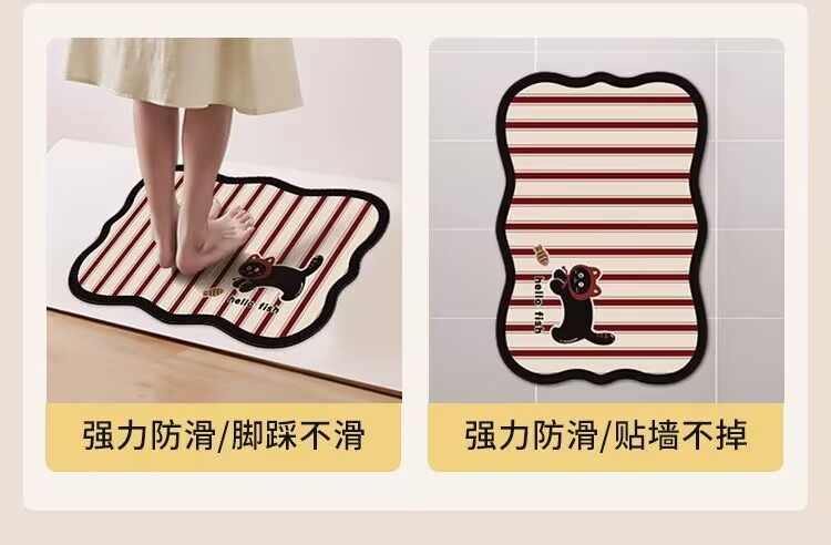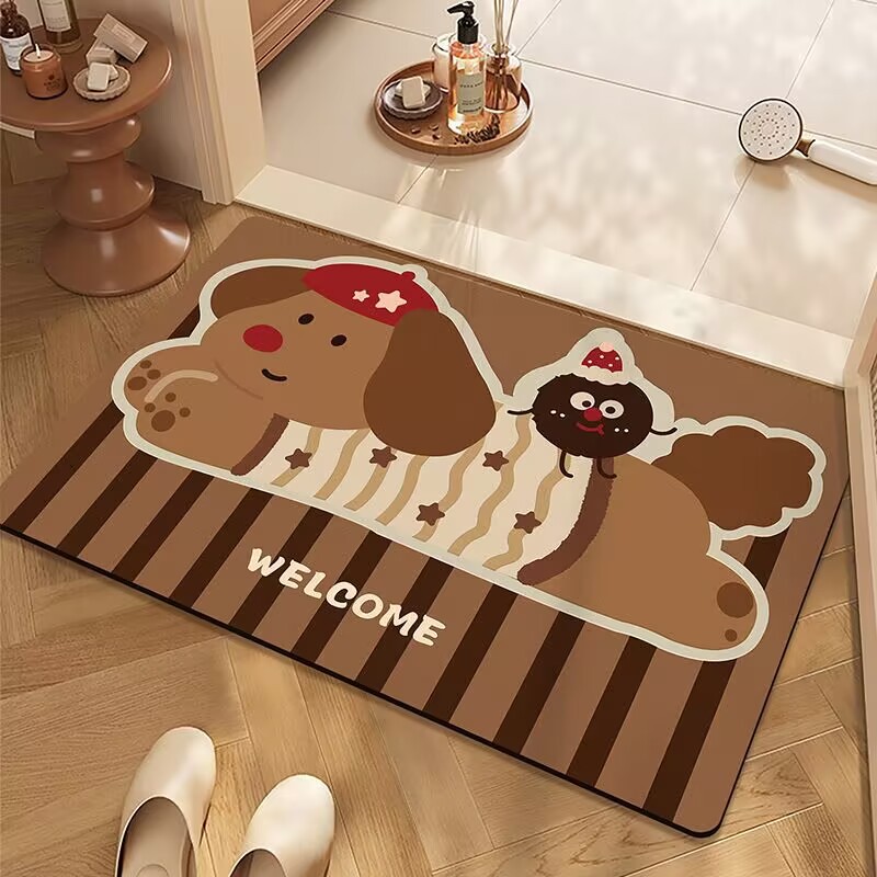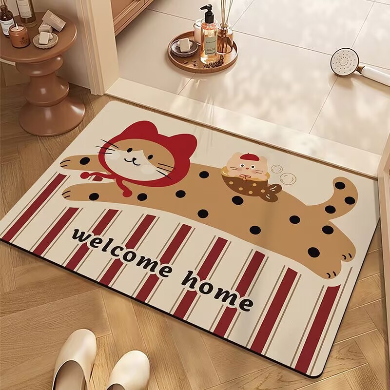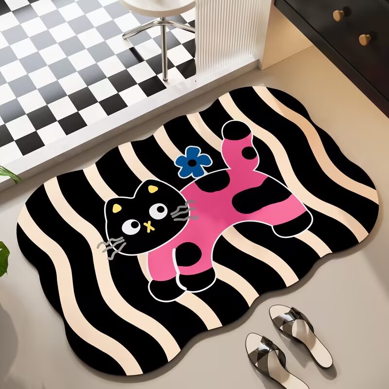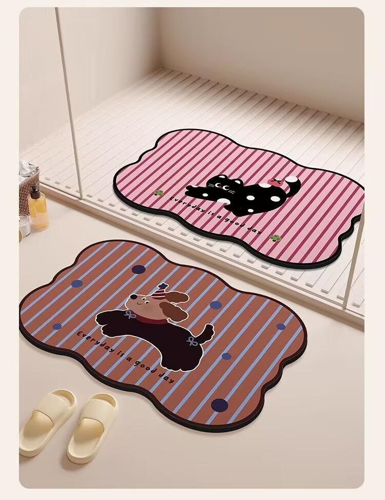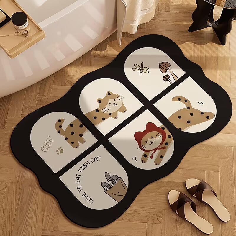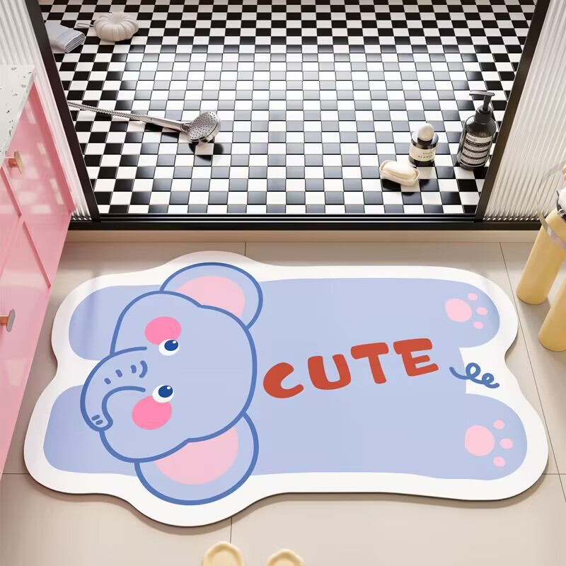 귀여운 스타일의 욕실 바닥 매트, 규조토 진흙 흡수성 바닥 매트, 욕실 문 미끄럼 방지 매트, 얼룩 방지 및 관리가 쉬운 발 매트스토어 가기