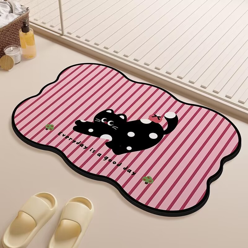 귀여운 스타일의 욕실 바닥 매트, 규조토 진흙 흡수성 바닥 매트, 욕실 문 미끄럼 방지 매트, 얼룩 방지 및 관리가 쉬운 발 매트
