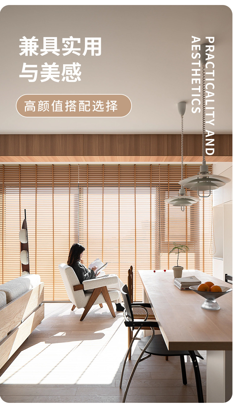 커튼, 원목 블라인드, 목재 블라인드, 거실 및 침실용 차양, 상하 리프팅 및 개폐가 가능한 4-in-1 롤러 블라인드