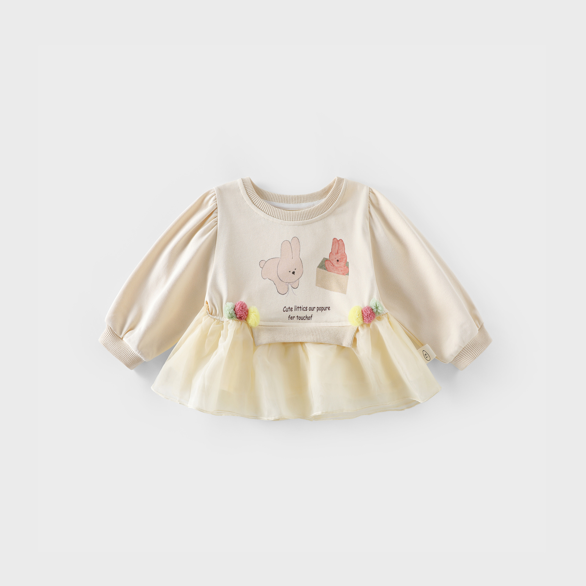 여자 패치 워크 스웨터 2025 새로운 가을 어린이 패션 만화 토끼 바닥 셔츠 아기 한국 스타일 가을 의류 트렌드