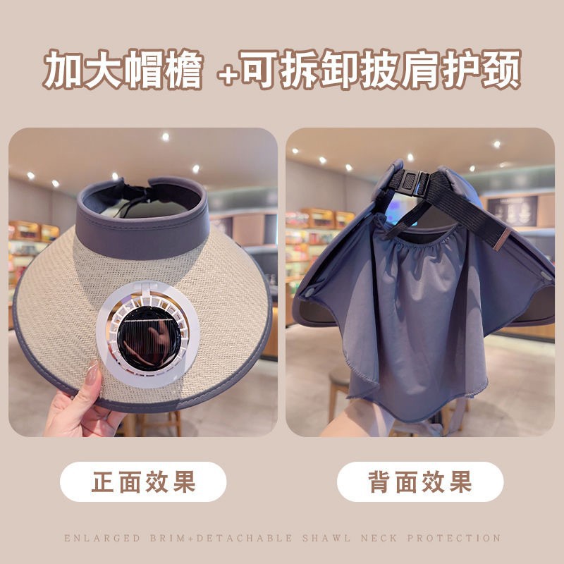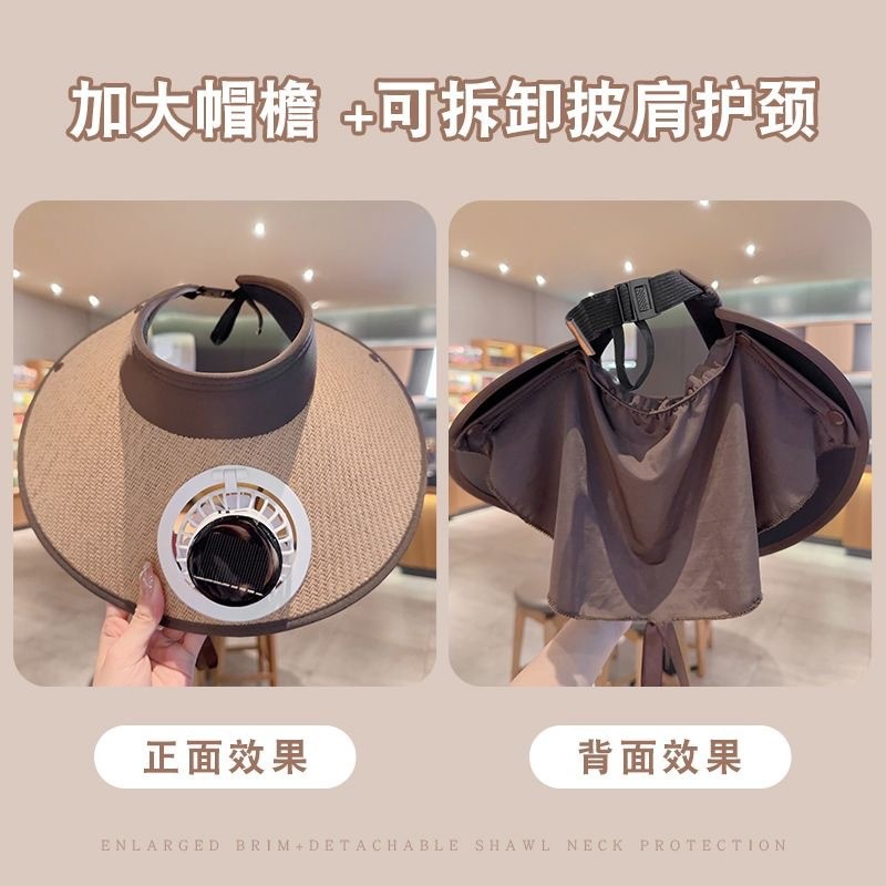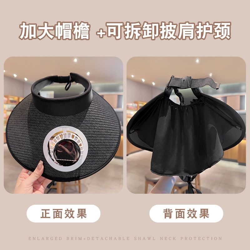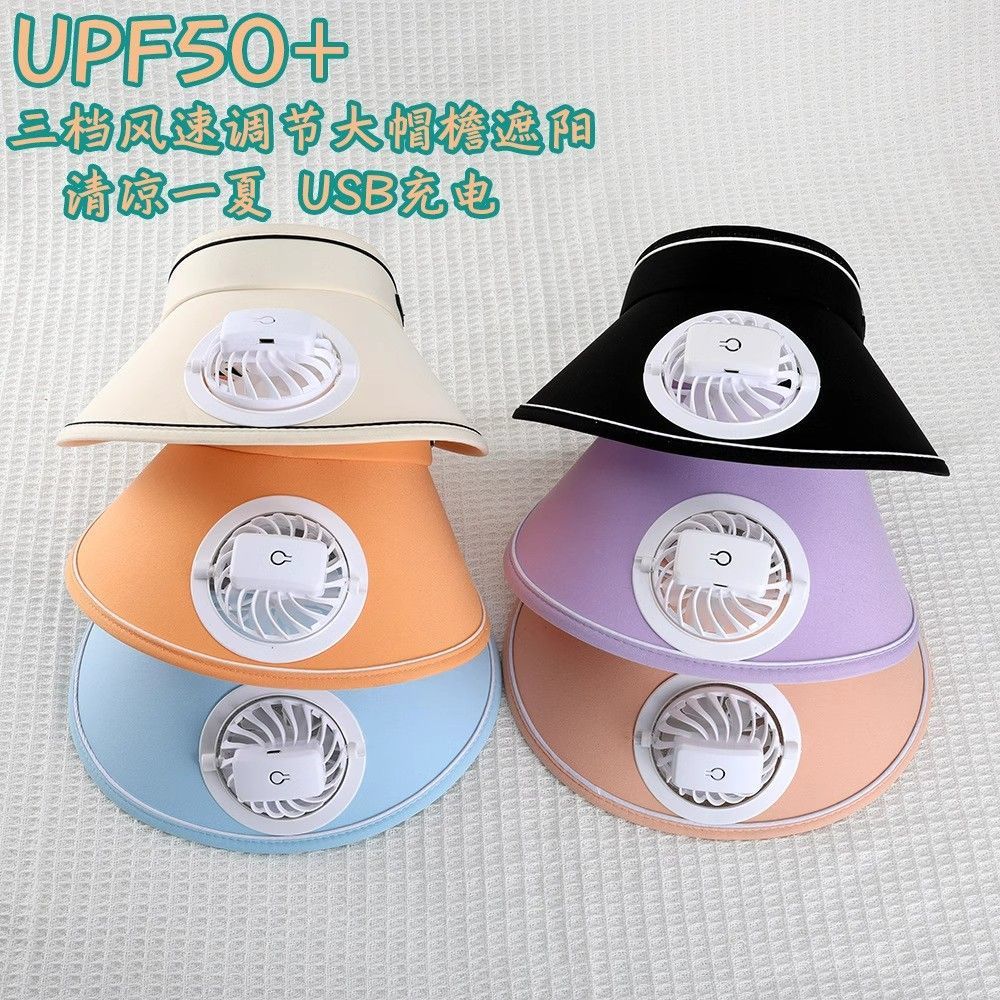 얼굴을 가리는 팬이 달린 여름용 태양 모자, 자외선 차단 모자, 챙이 큰 빈 모자, 여성용 태양 모자, 패셔너블한 충전식 모자스토어 가기
