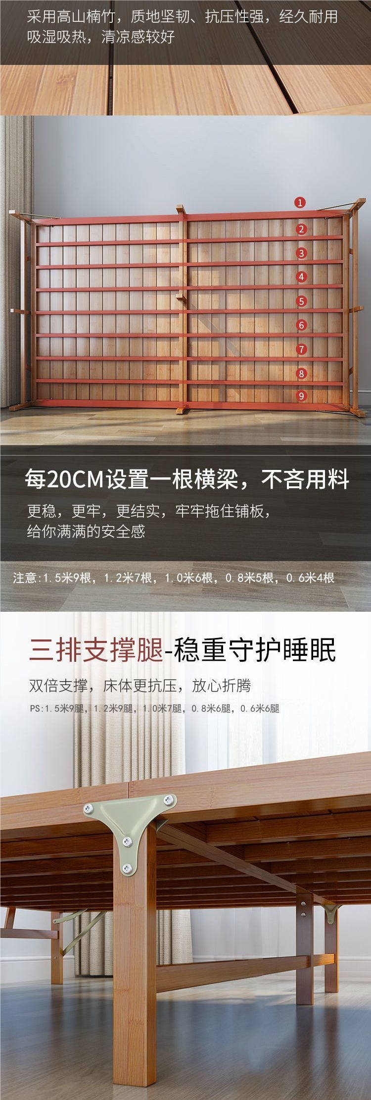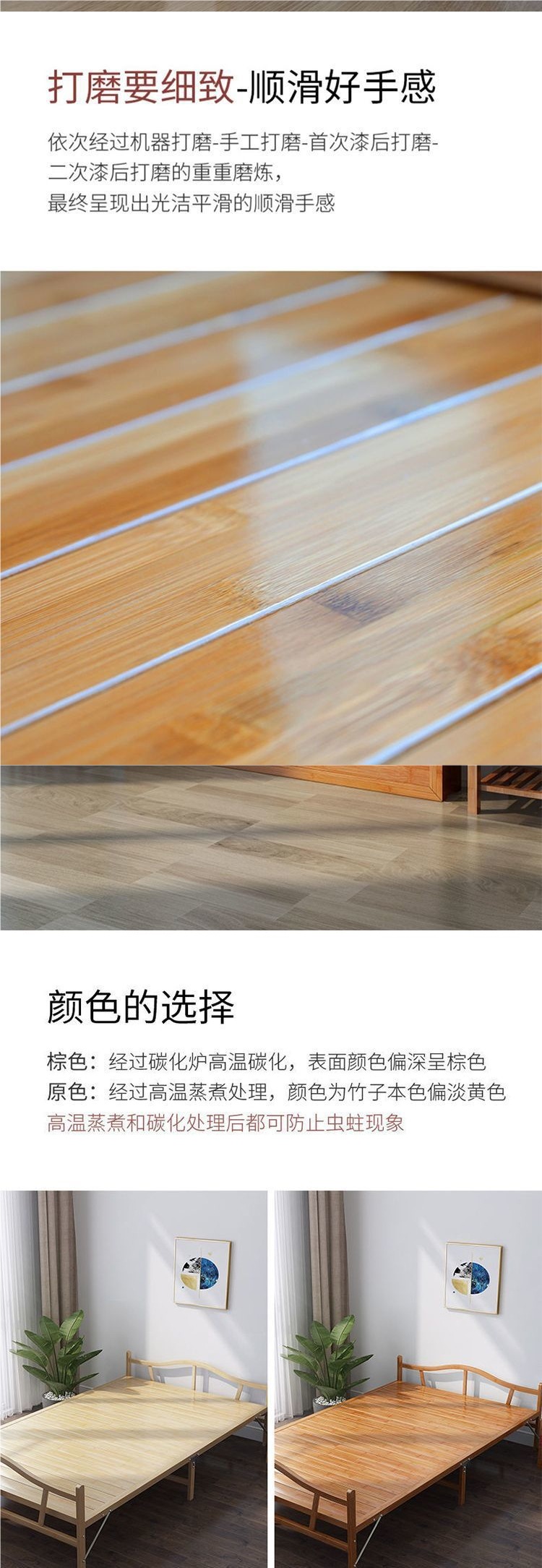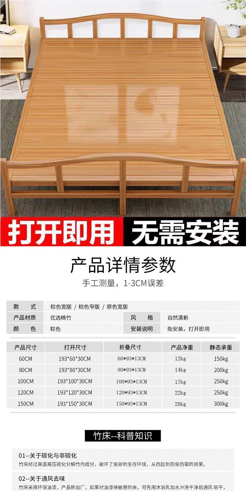 대나무 침대 접이식 침대 싱글 더블 홈 점심 시간 시원한 침대 성인 임대 주택 간단한 단단한 나무 침대 대나무 침대스토어 가기