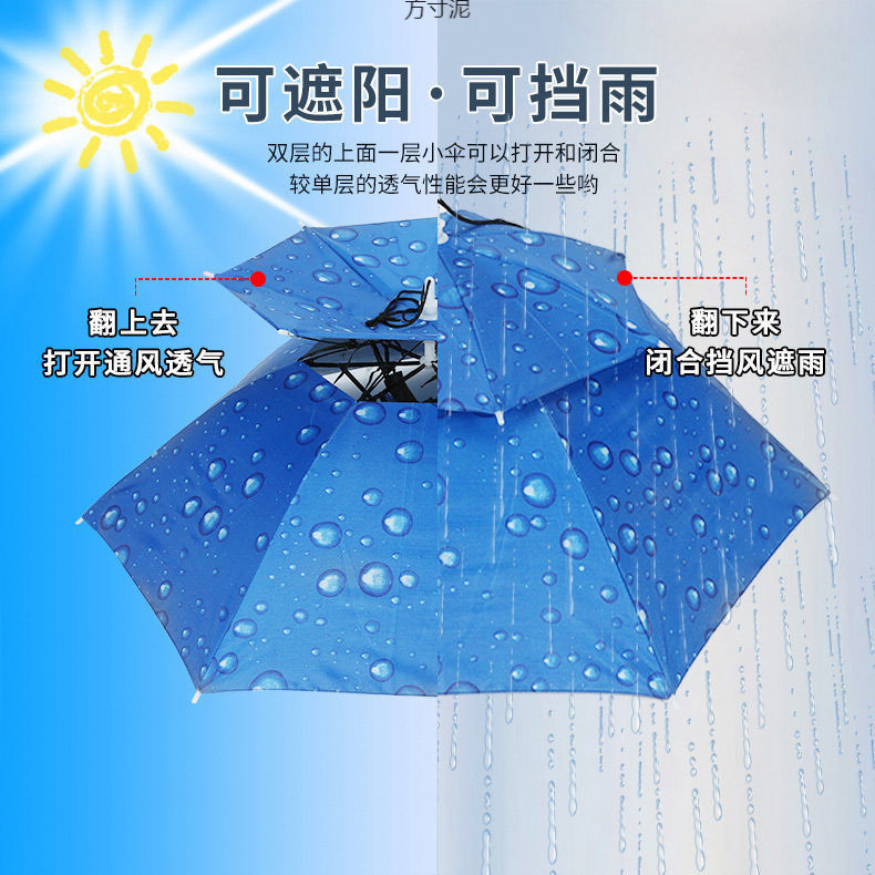 머리에 착용하는 우산 모자, 특대형, 비 또는 빛, 70% off 겹 우산, 낚시 사진, 차 따기, 모자, 자외선 차단 우산스토어 가기