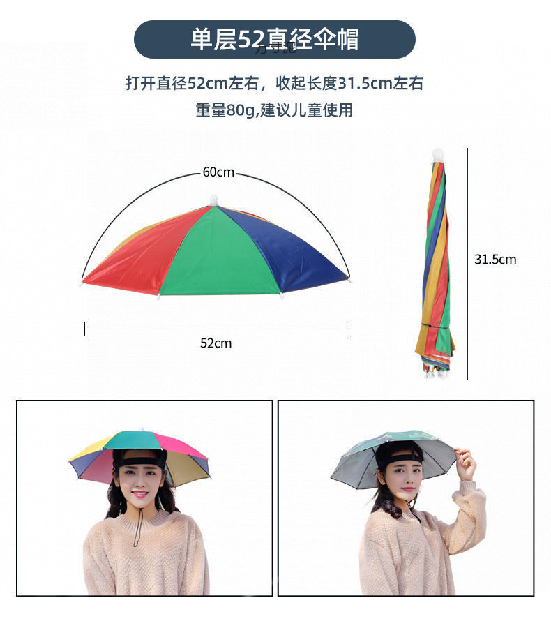 머리에 착용하는 우산 모자, 특대형, 비 또는 빛, 70% off 겹 우산, 낚시 사진, 차 따기, 모자, 자외선 차단 우산
