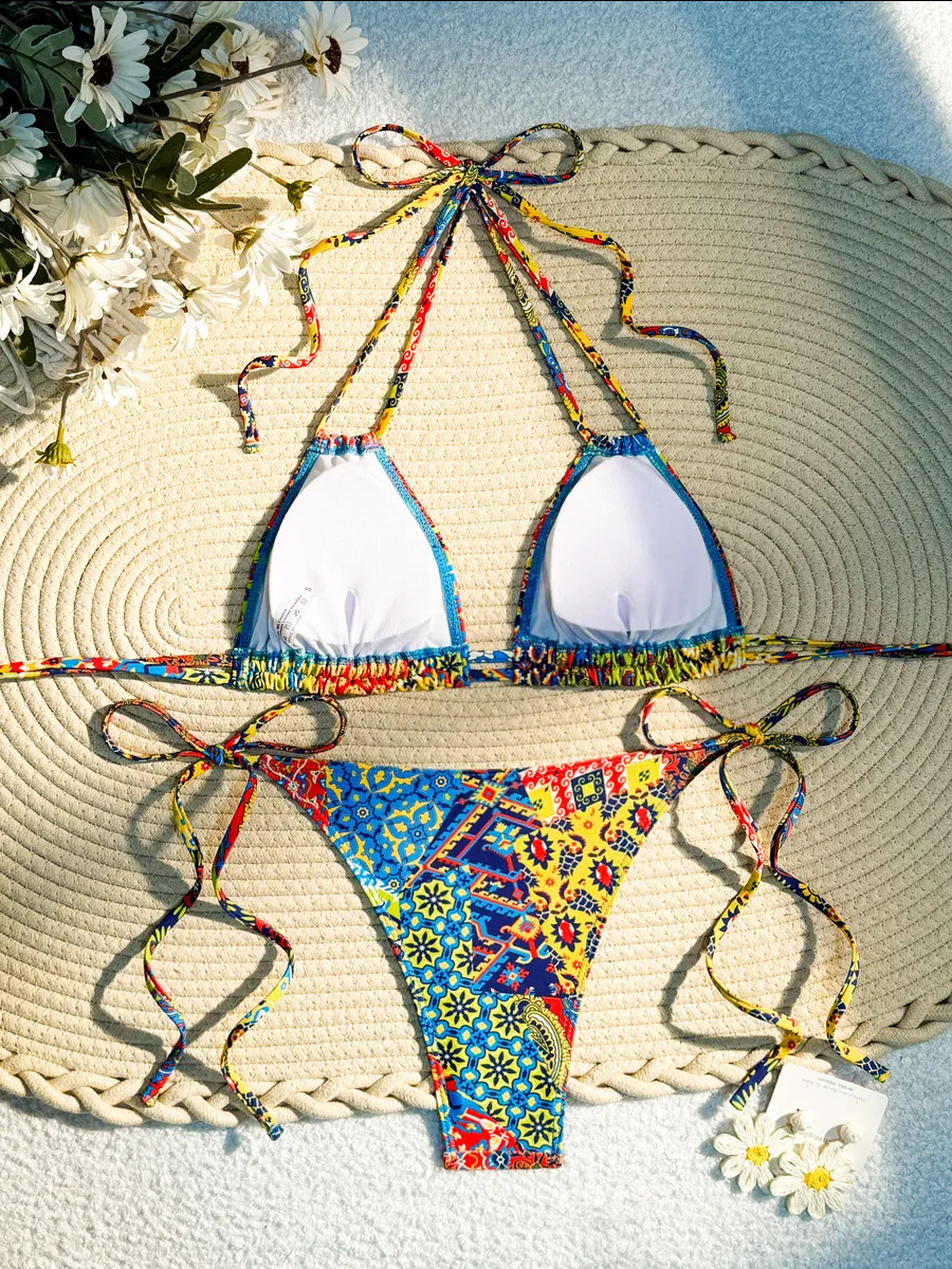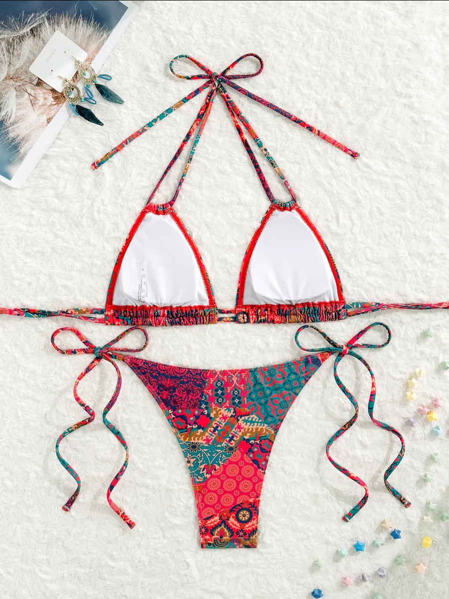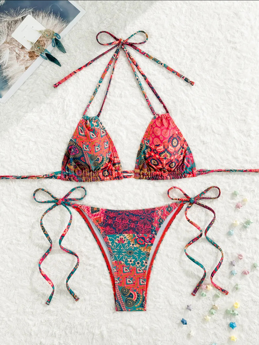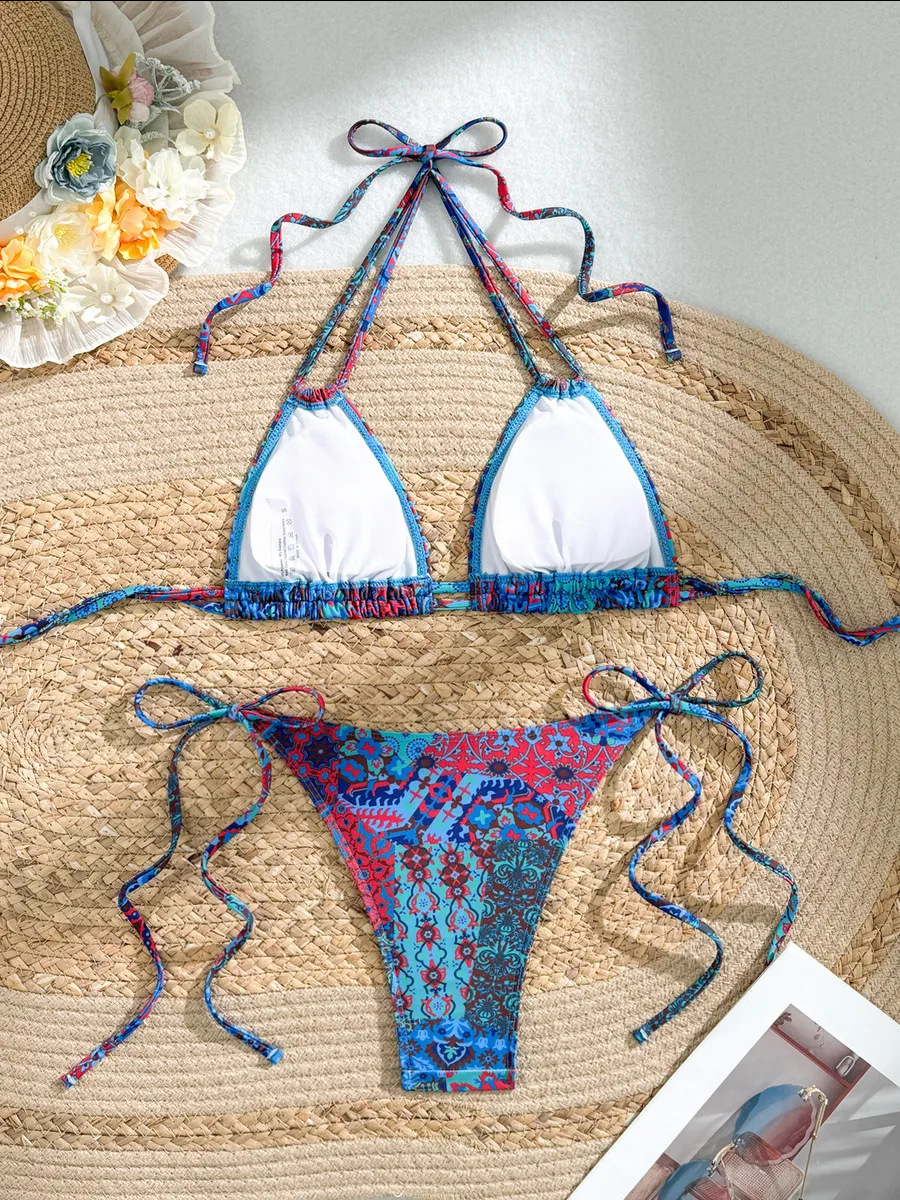 2025 새로운 유럽과 미국의 민족 스타일 스플릿 수영복 섹시한 더블 레이스 업 비키니 수영복 비키니 크로스 보더 수영복스토어 가기