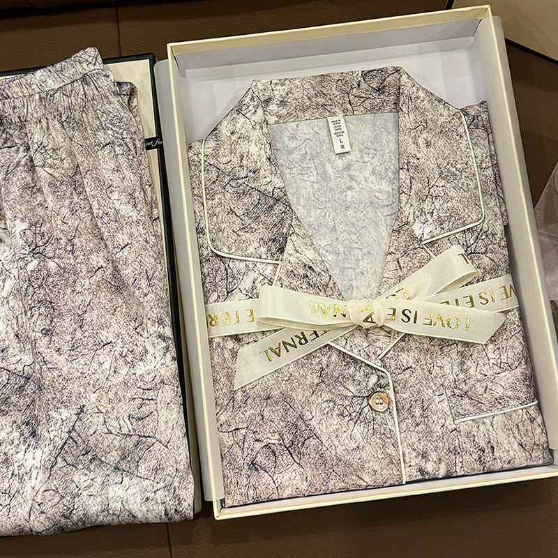 2025 새로운 얼음 실크 커플 잠옷 반팔 바지 중국 스타일 인쇄 하이 엔드 편안한 통기성 홈웨어 세트
