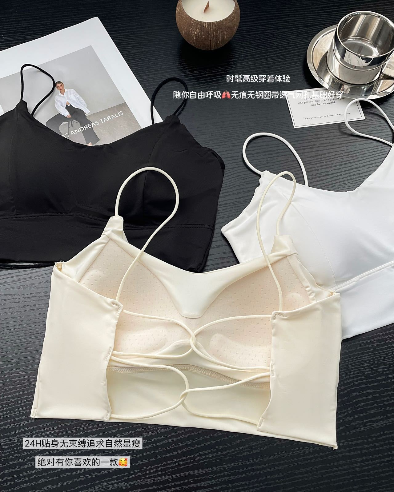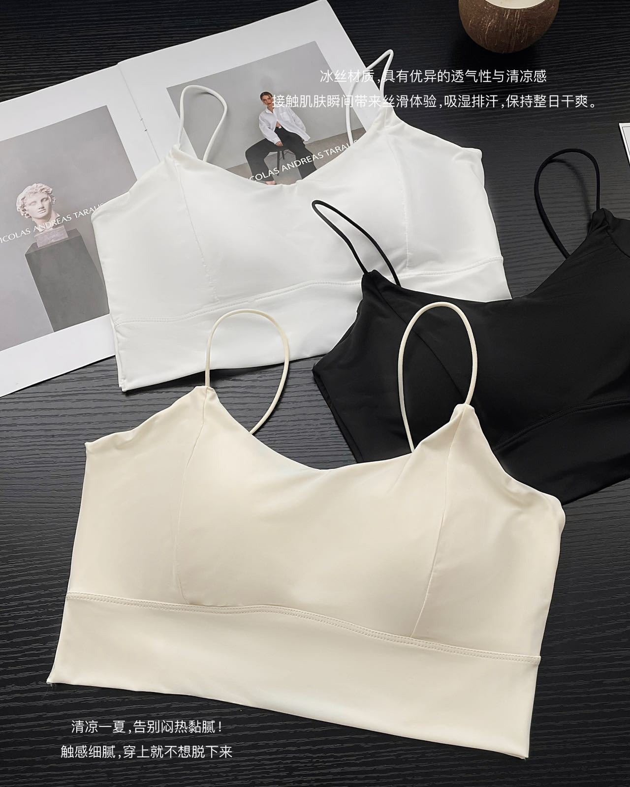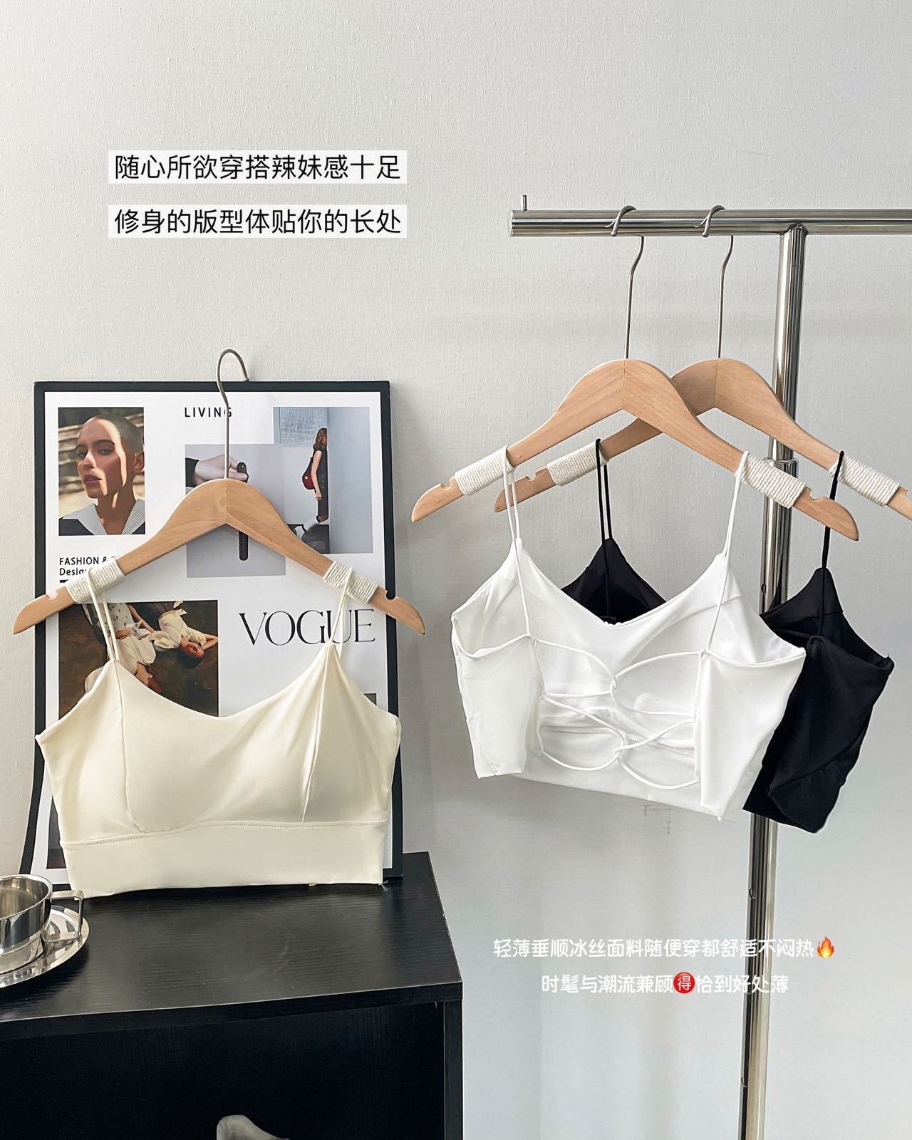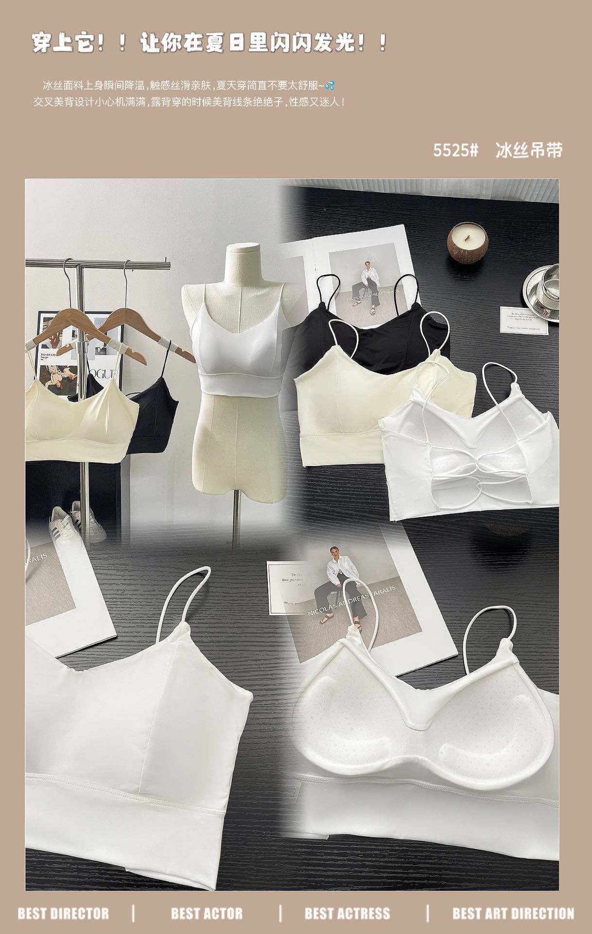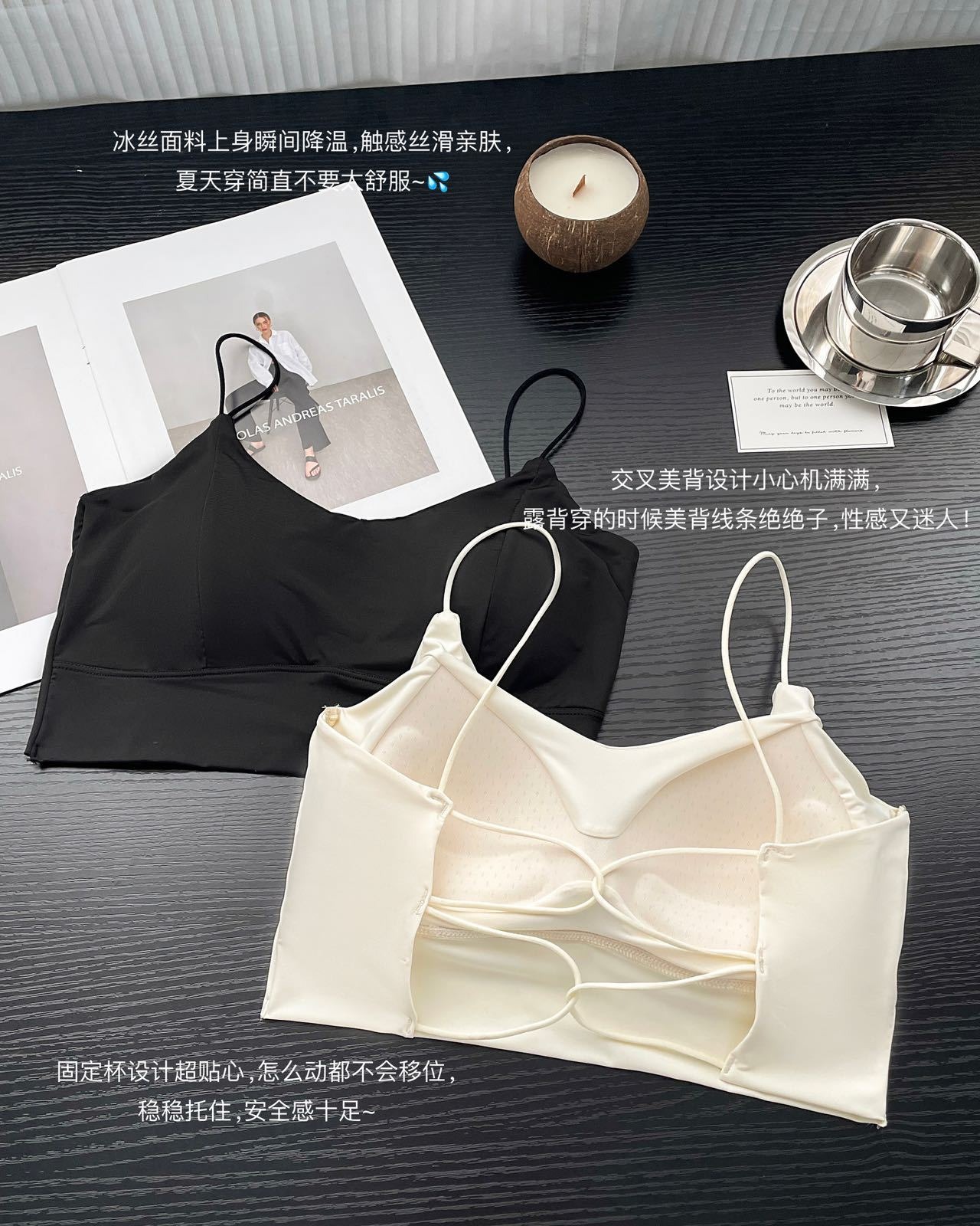 여름 얼음 실크 심리스 튜브 탑 여성용 섹시 크로스 백 고정 컵 스파게티 스트랩 여성용 가슴 감싸기스토어 가기