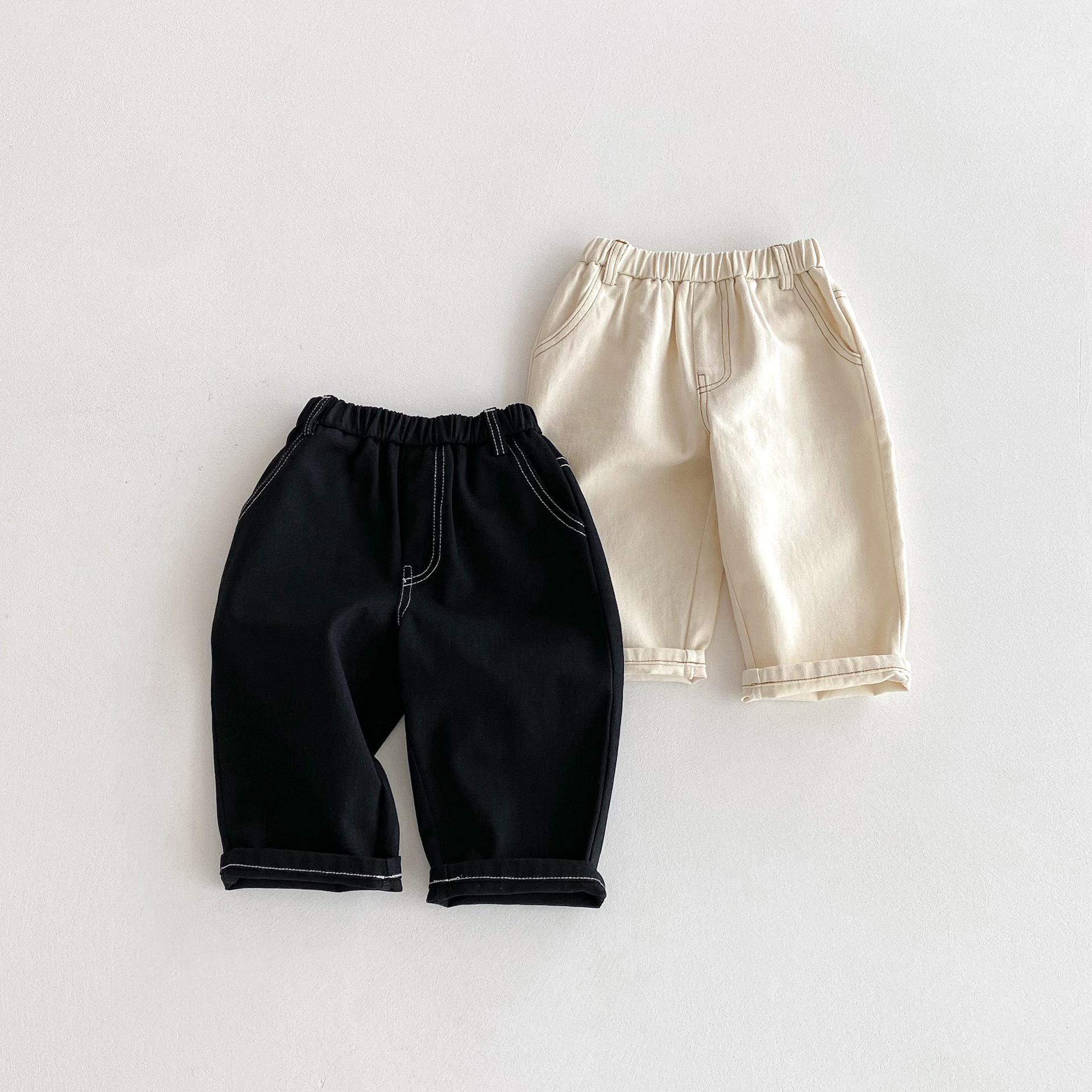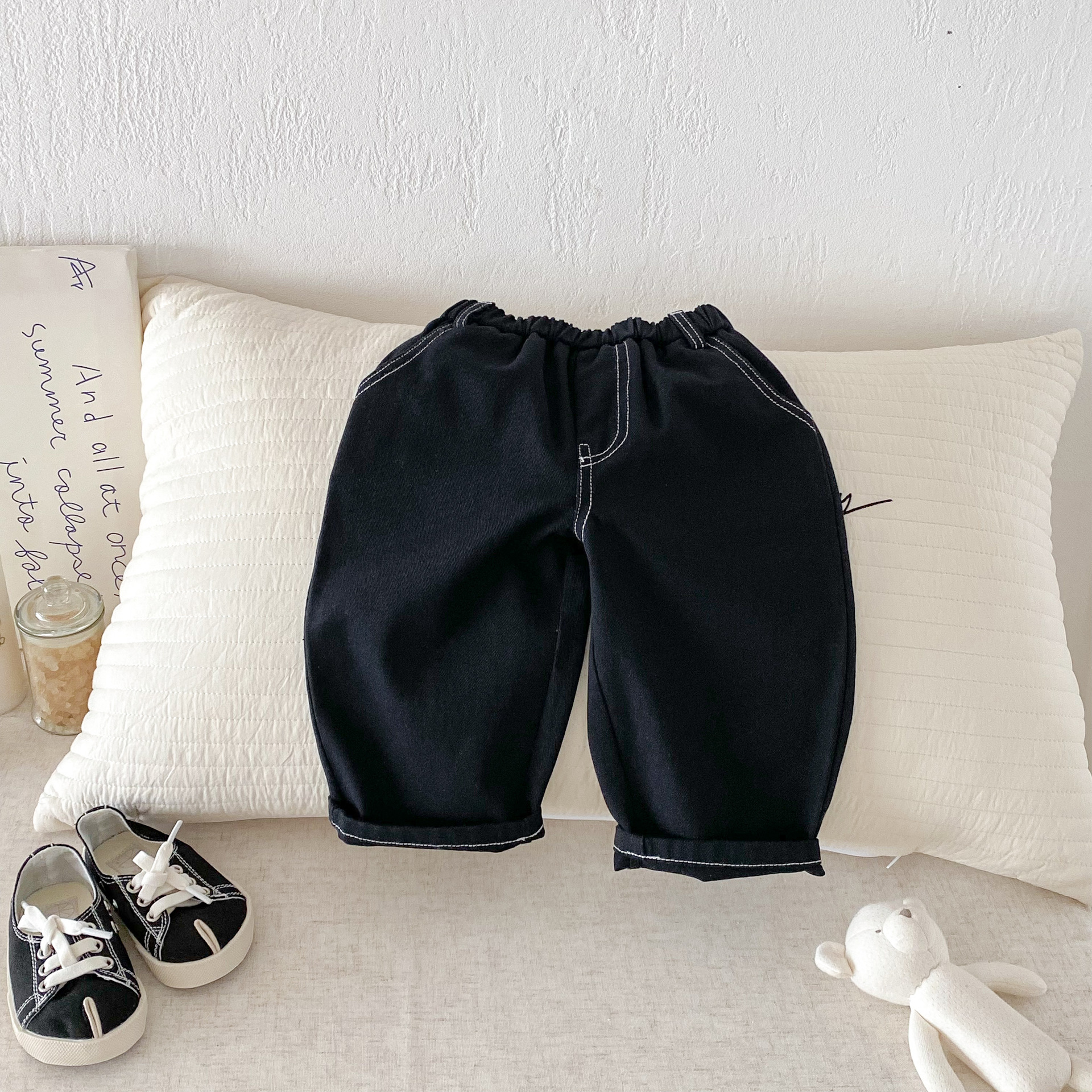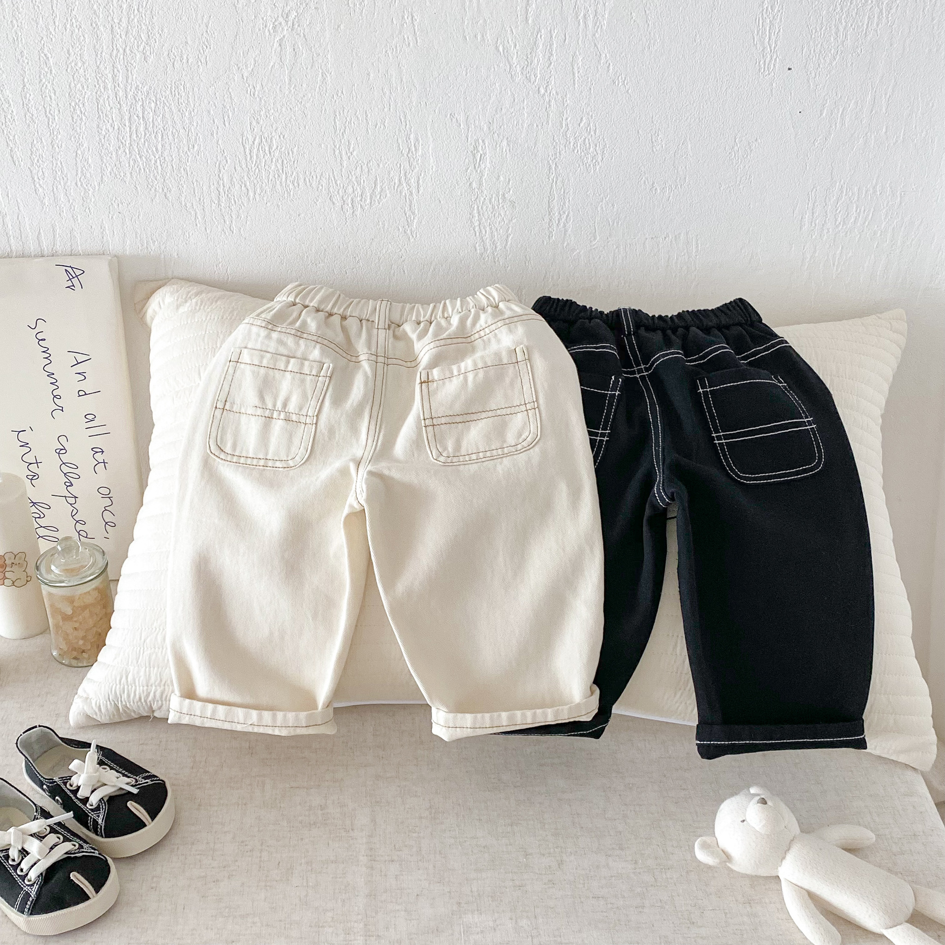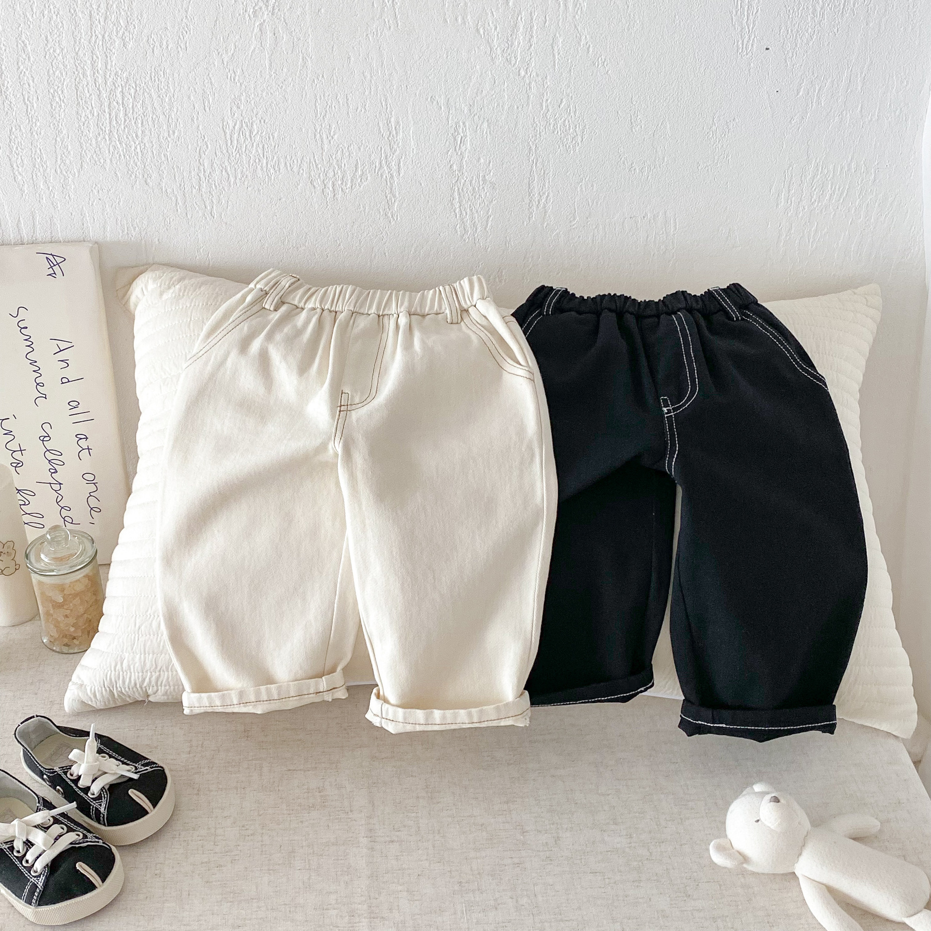 한국 스타일 아동복 바지 가을 신제품 중소형 아동 단색 캐주얼 바지 소년 소녀 청바지 봄, 가을 바지스토어 가기