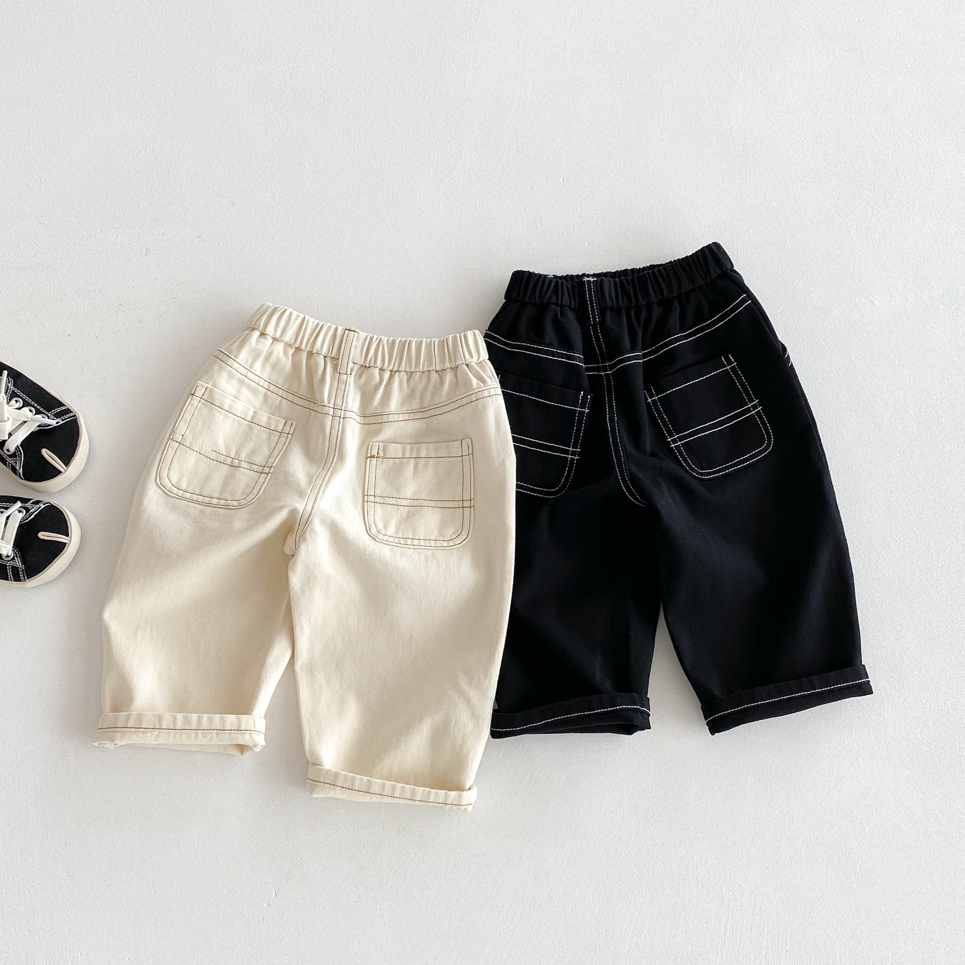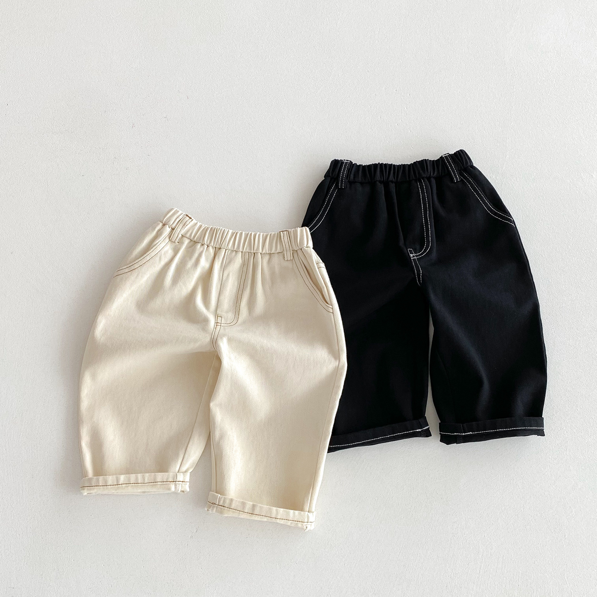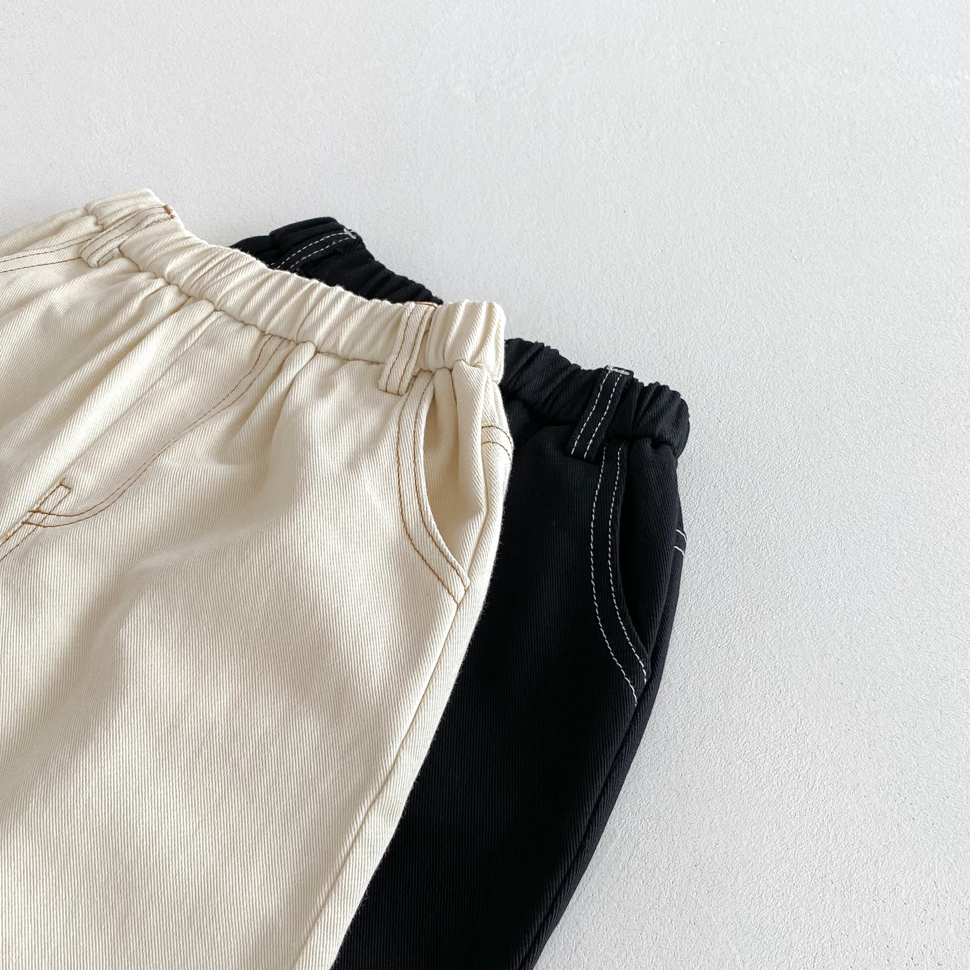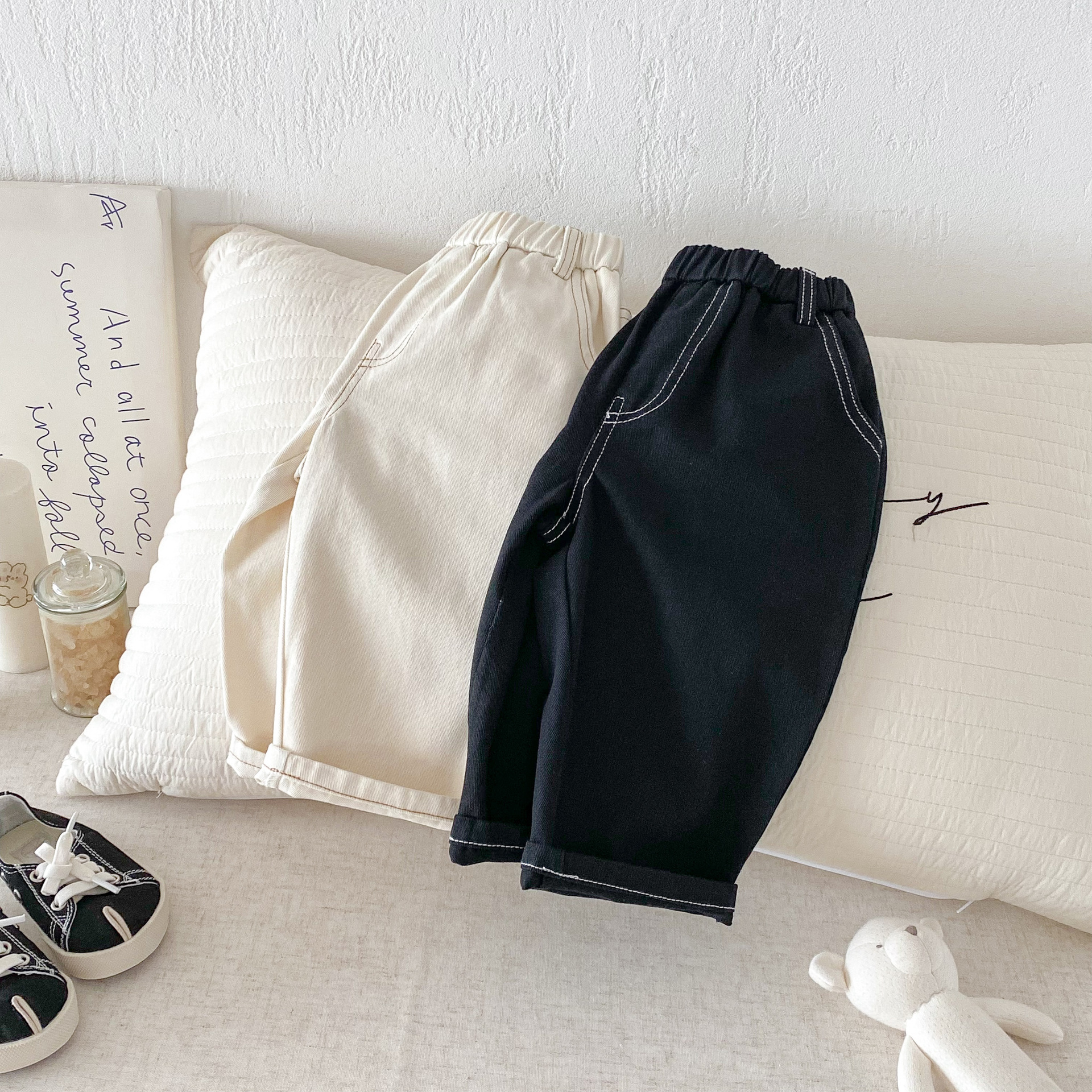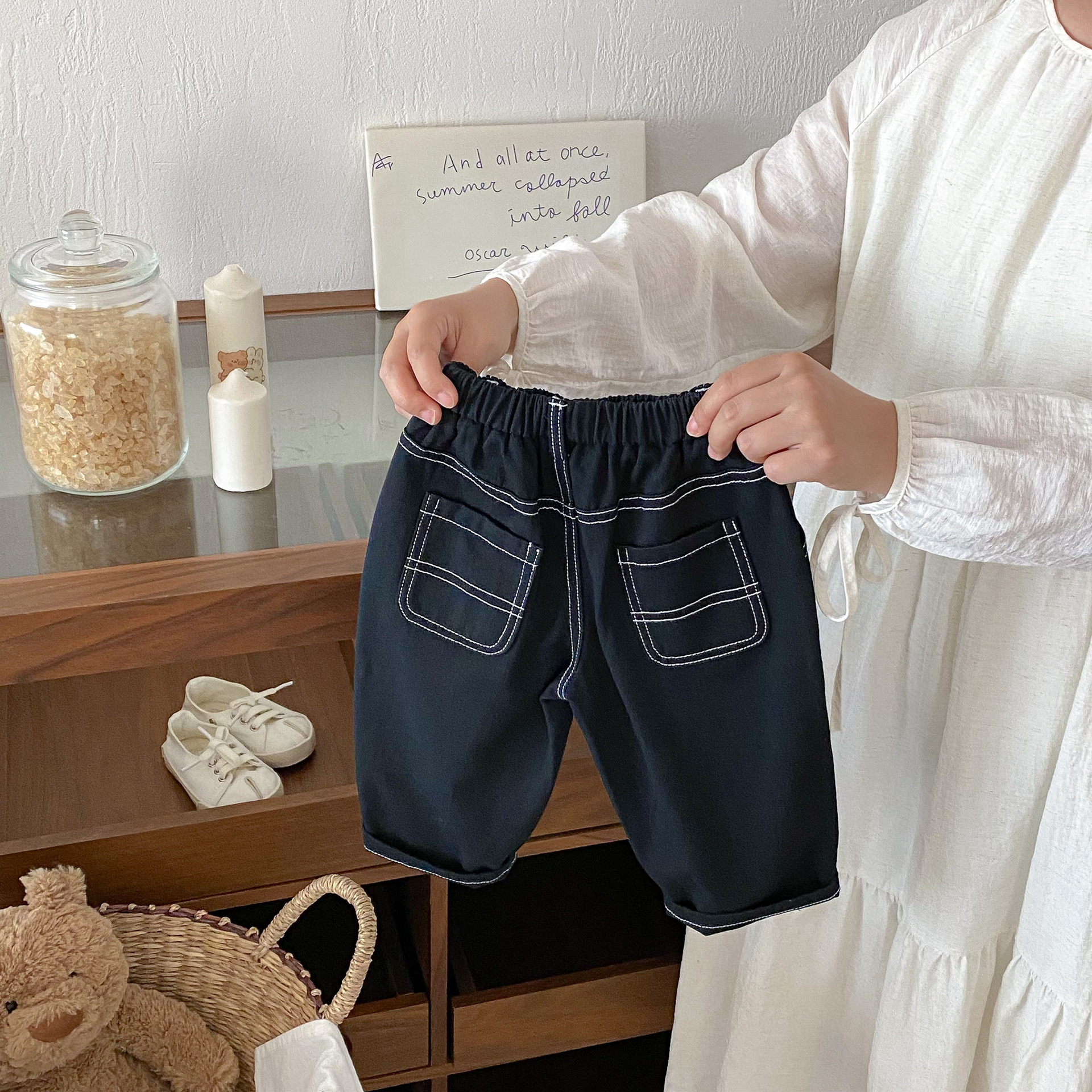 한국 스타일 아동복 바지 가을 신제품 중소형 아동 단색 캐주얼 바지 소년 소녀 청바지 봄, 가을 바지스토어 가기