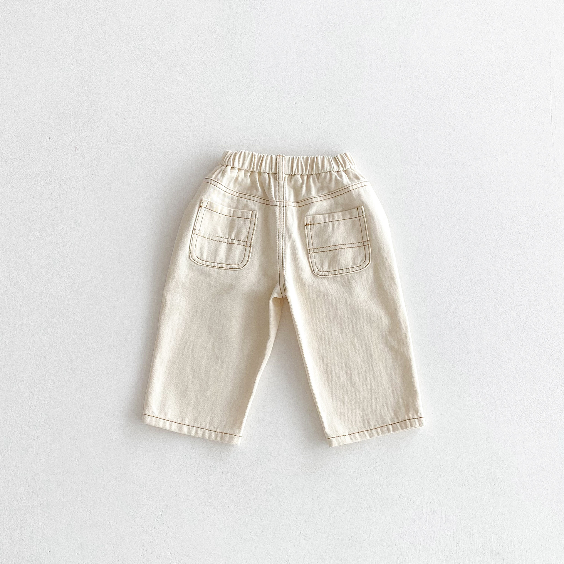 한국 스타일 아동복 바지 가을 신제품 중소형 아동 단색 캐주얼 바지 소년 소녀 청바지 봄, 가을 바지