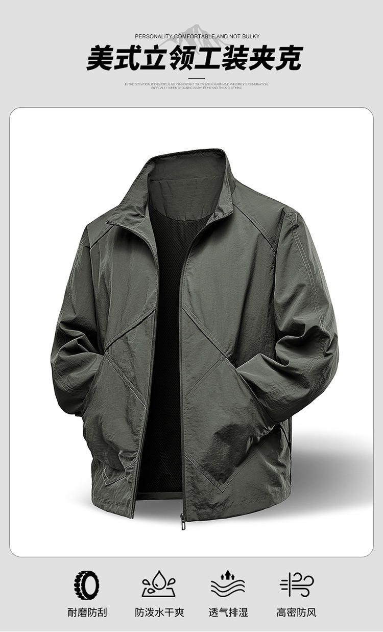 봄과 가을 새로운 스타일의 작업 재킷 남성용 탄성 방수 야외 재킷 스탠드 칼라 재킷 나일론 윈드 브레이커 고품질